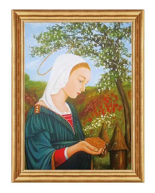 Święty patron, obraz "Maria Królowa Pszczół" z przykładową ramą (zobacz inne ramy)