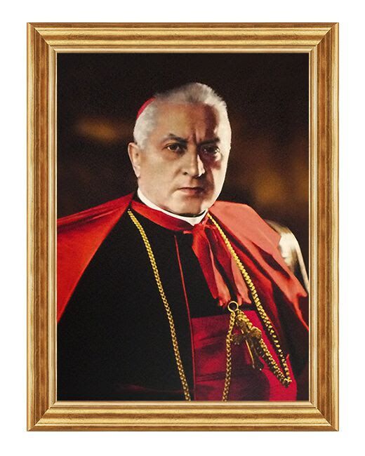Obraz Sługa Boży "Kardynał Prezbiter August Hlond" z przykładową ramą (zobacz inne ramy)