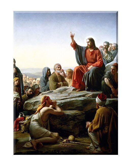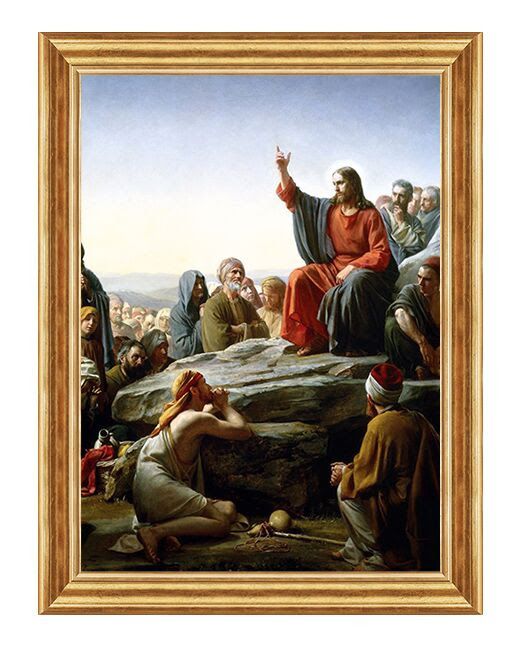 Obraz przedstawiający wizerunek nauczającego Pana Jezusa. W nauczaniu Jezusa centralnym motywem było Królestwo Boże, rozumiane jako sfera panowania Bożego, w której znaleźć się może każdy, poprzez zmianę swego życia. W pełni miało się objawić w czasach ostatecznych. Było ono oparte na Starym Testamencie. Synteza nauki Jezusa Chrystusa przedstawiona została w Kazaniu na górze, zawartym w dwóch nieco różnych wersjach w Ewangelii Mateusza i Ewangelii Łukasza.Cechy obrazu