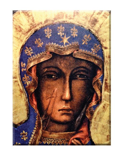 Matka Boża Częstochowska, zwana również Czarną Madonną, to jedno z najważniejszych i najczęściej czczonych wizerunków Maryi w chrześcijaństwie. Obraz ten jest przechowywany w Sanktuarium Matki Bożej Jasnogórskiej w Częstochowie, Polska. Czarną Madonnę otaczają liczne legendy i cuda, co czyni ją przedmiotem głębokiej dewocji i pielgrzymek. Maryja na tym obrazie jest ukazana jako Matka z Dzieciątkiem Jezus. Jednak to, co wyróżnia Czarną Madonnę, to jej ciemny kolor skóry, stąd nazwa. Jej postać emanuje powagą i siłą ducha. Często widziana jest w tradycyjnym stroju, z diademem na głowie i zasłoniętą chustą. Dzieciątko Jezus błogosławi wiernych rączką.Matka Boża Częstochowska ma także znamienny ślad na policzku, który według legendy pochodzi od strzały zadanej przez protestanckiego żołnierza w XVII wieku.