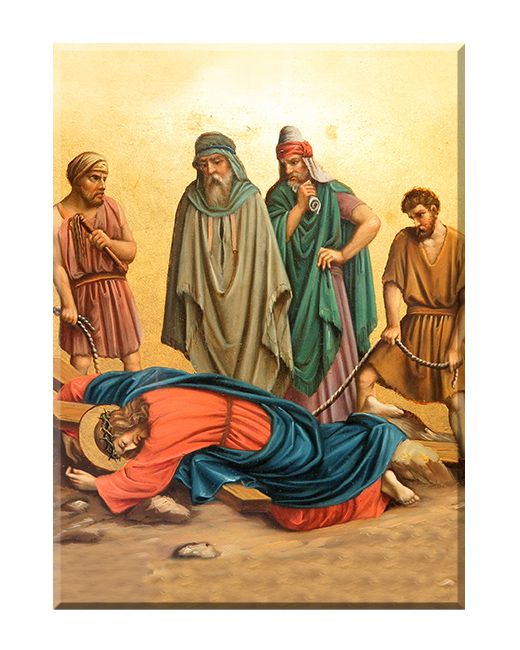Obraz o tematyce biblijnej poruszający motyw drogi krzyżowej. On, który posiadał boską naturę