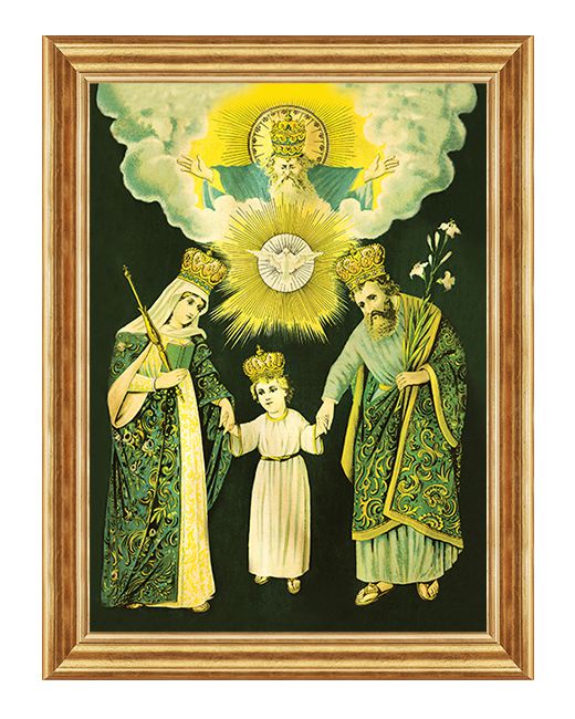 Obraz emanuje harmonią i spokojem, a mistyczna aura otaczająca Świętą Rodzinę wyraża ich bliskość z Bogiem. To dzieło sztuki religijnej, które przypomina nam o wartościach rodzinnych i znaczeniu miłości w życiu każdego człowieka.