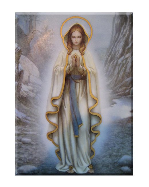Obraz na płótnie przedstawia Matkę Bożą z Lourdes.
