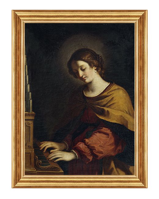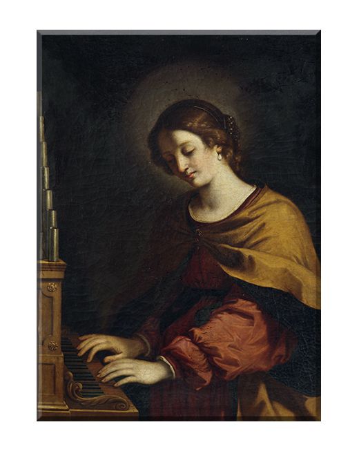 Jest patronką muzyków i chórzystów.Cechy obrazu