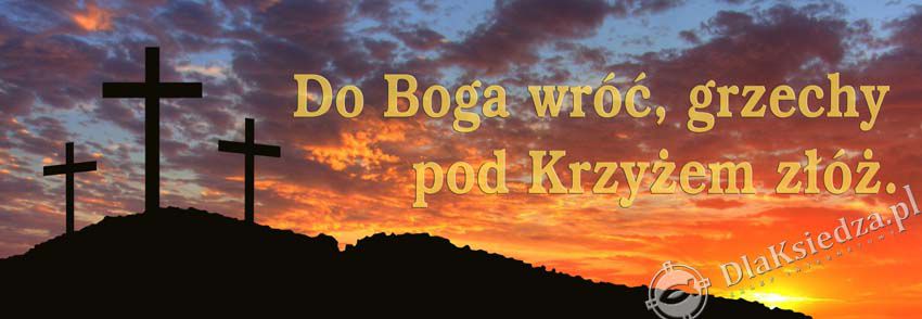 Baner okolicznościowy poziomy z napisem "Do Boga wróć, grzechy pod krzyżem złóż" na Wielki Post. Przeznaczony do dekoracji zewnętrznej i wewnętrznej.