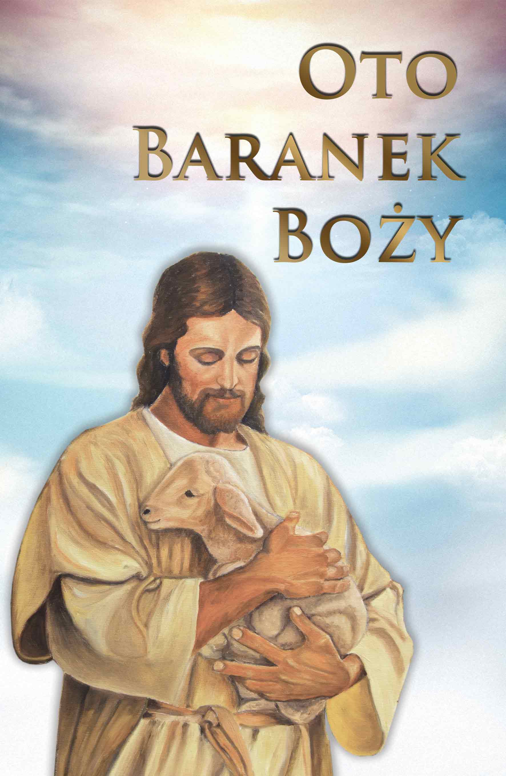 Baner okolicznościowy pionowy z napisem „Oto Baranek Boży”. Przeznaczony do dekoracji zewnętrznej i wewnętrznej.