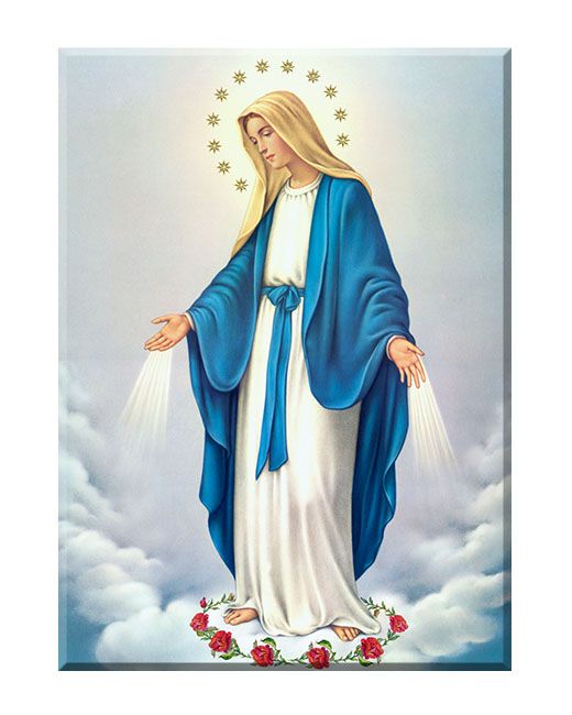 Obraz na płótnie przedstawia Matkę Bożą z Lourdes.