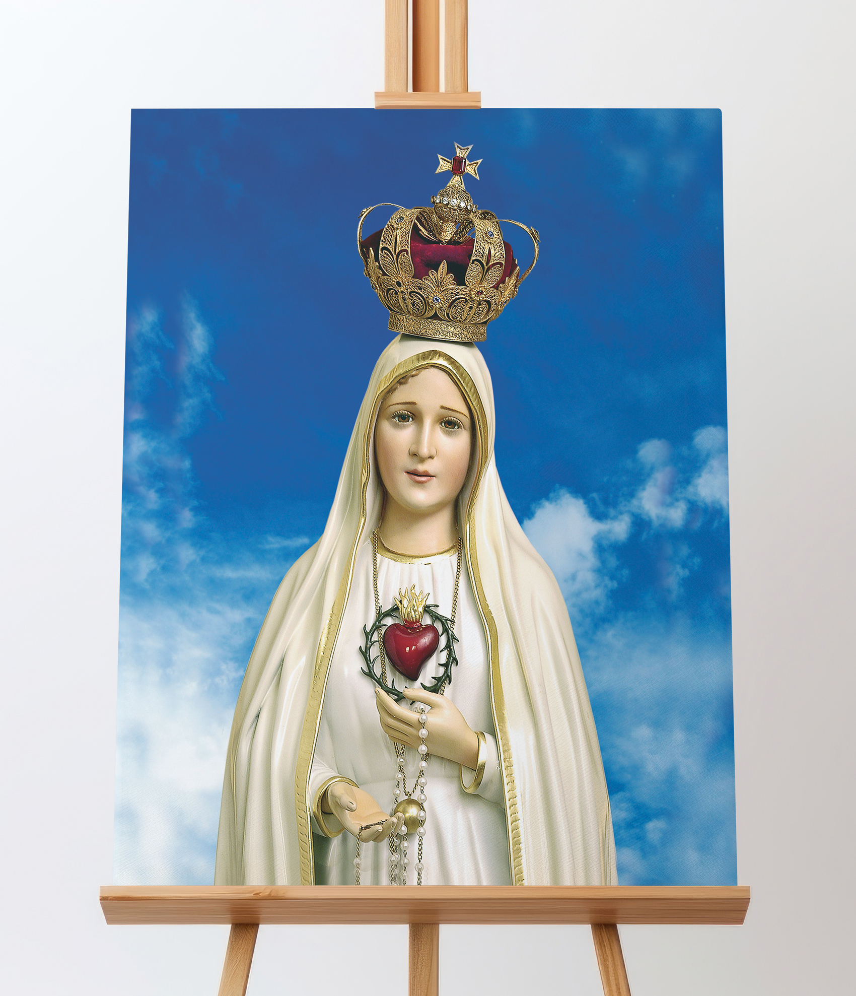 Obraz figury Matki Bożej Fatimskiej - obraz na płótnie.