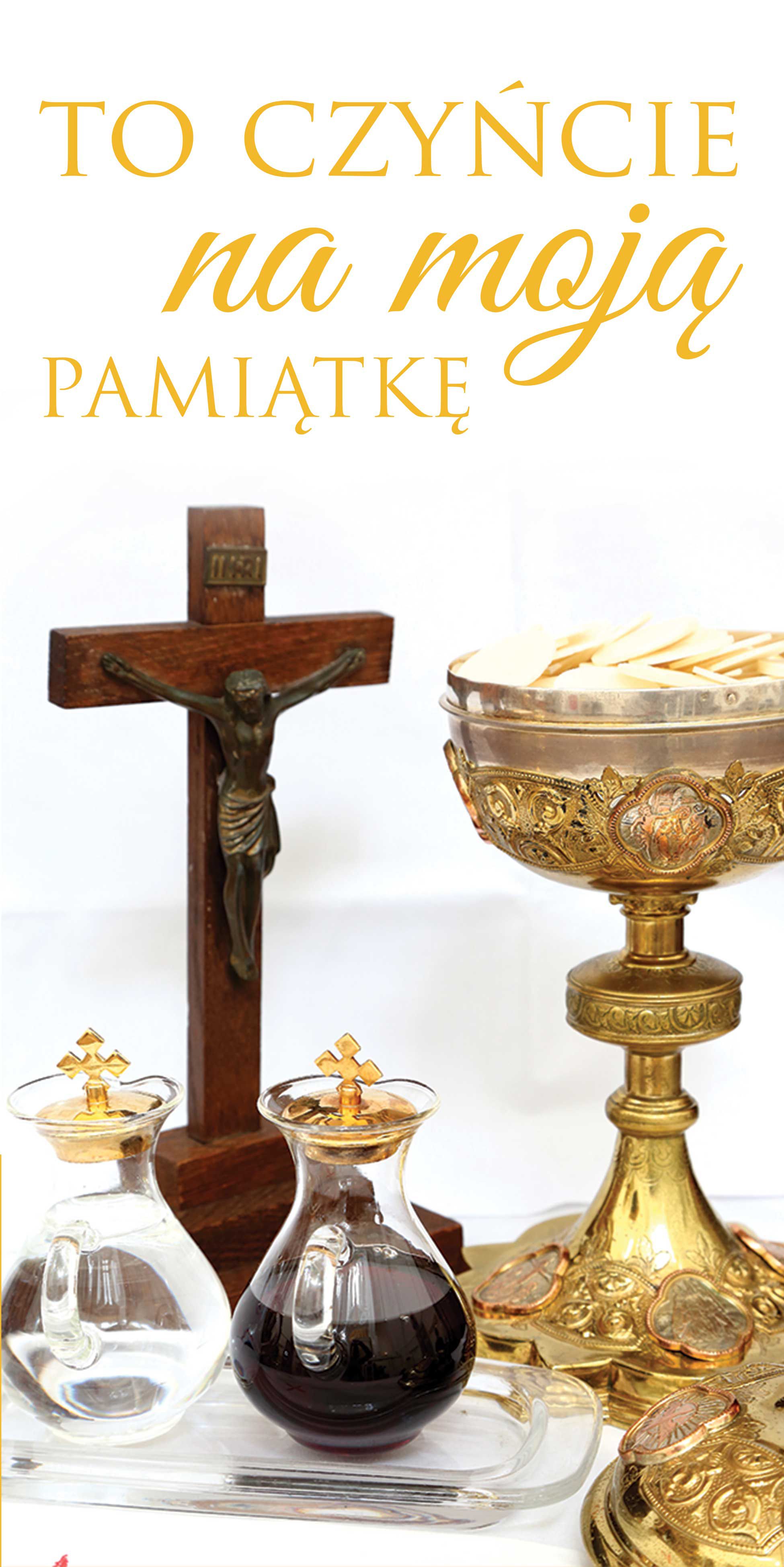 Baner okolicznościowy pionowy z napisem „To czyńcie na moją pamiątkę”. Przeznaczony do dekoracji zewnętrznej i wewnętrznej.