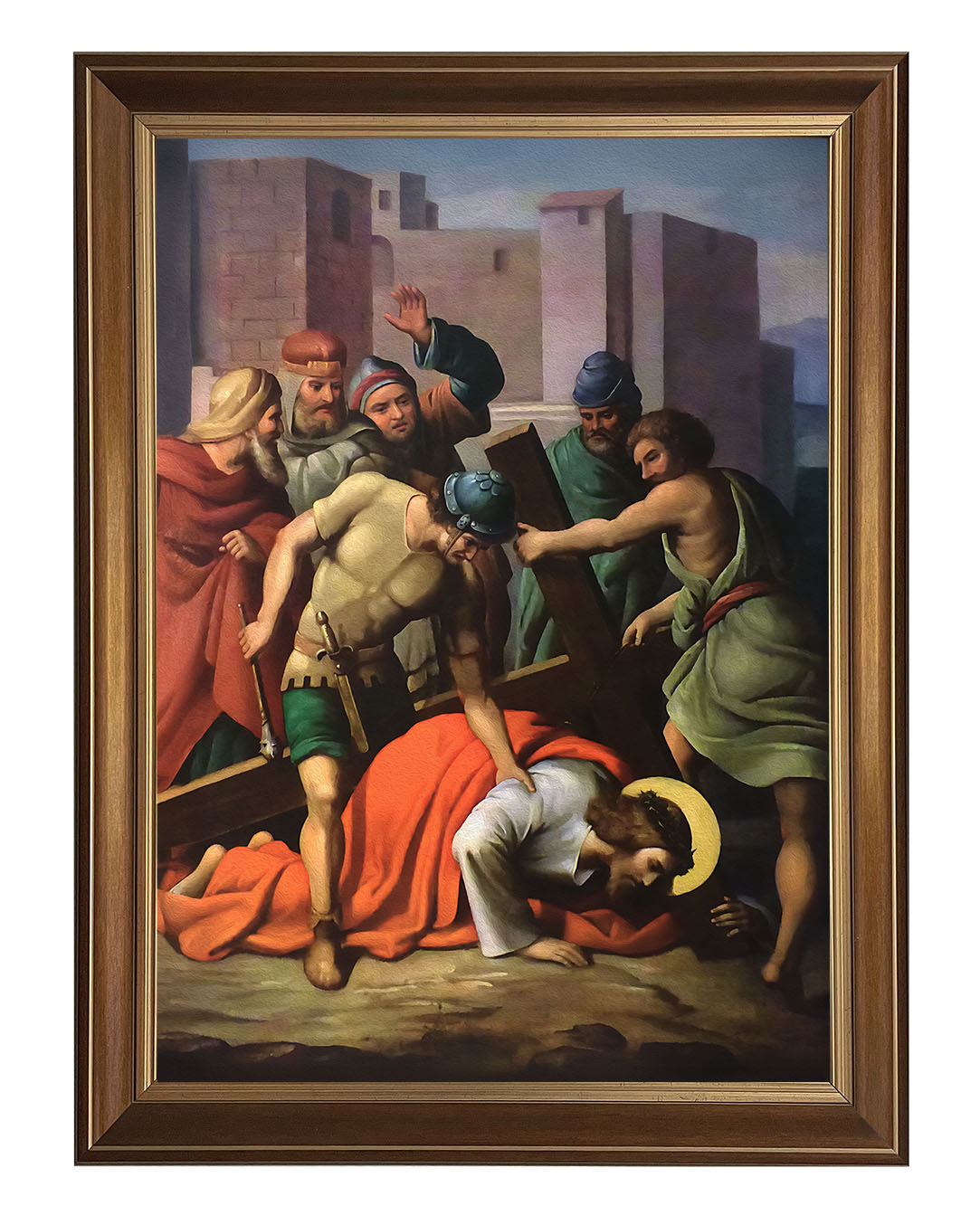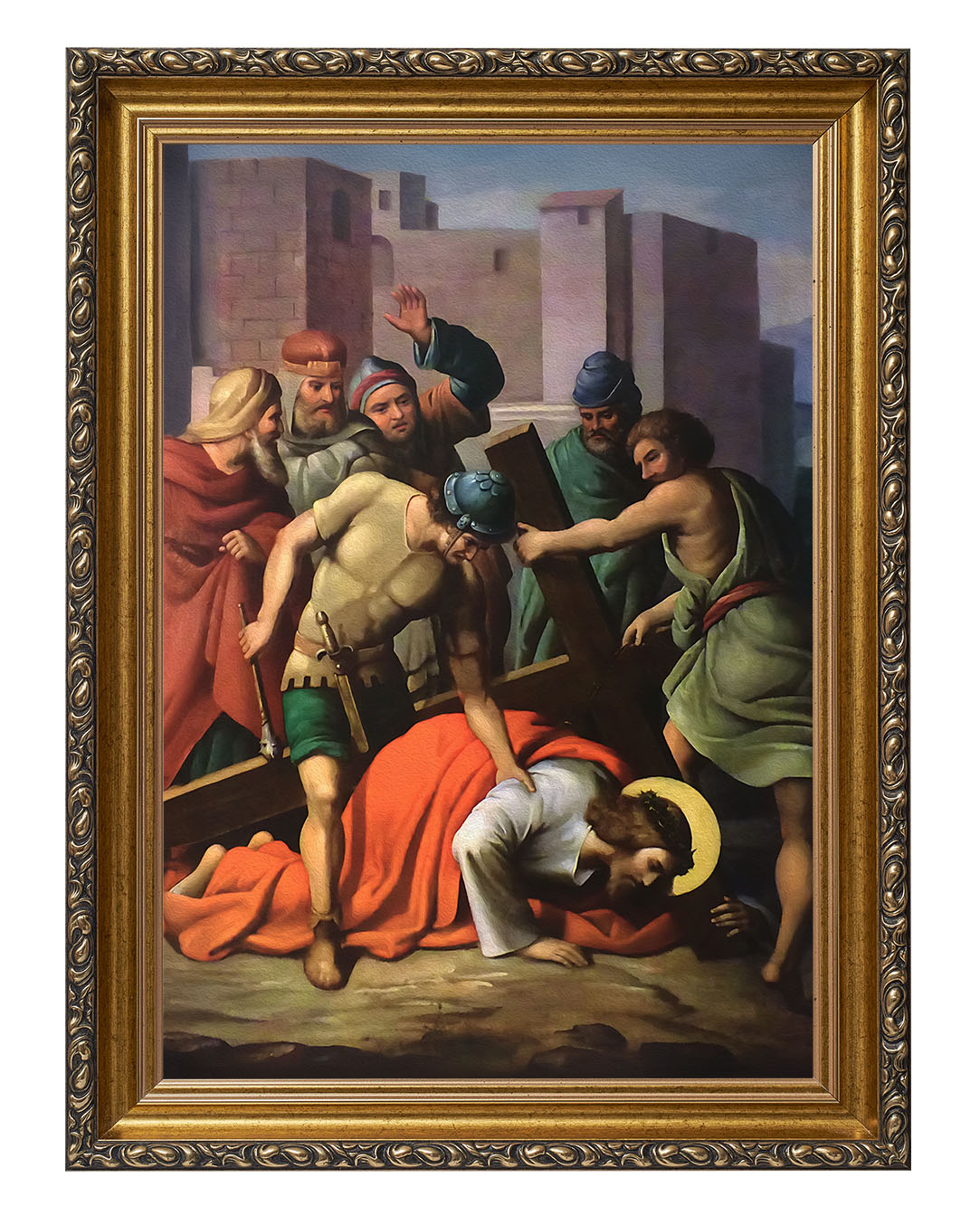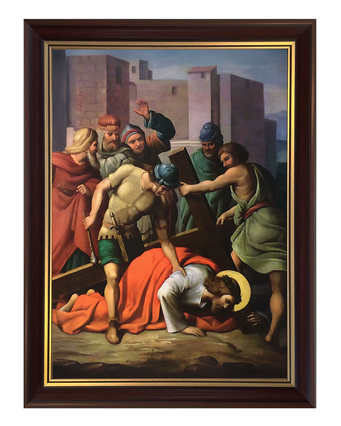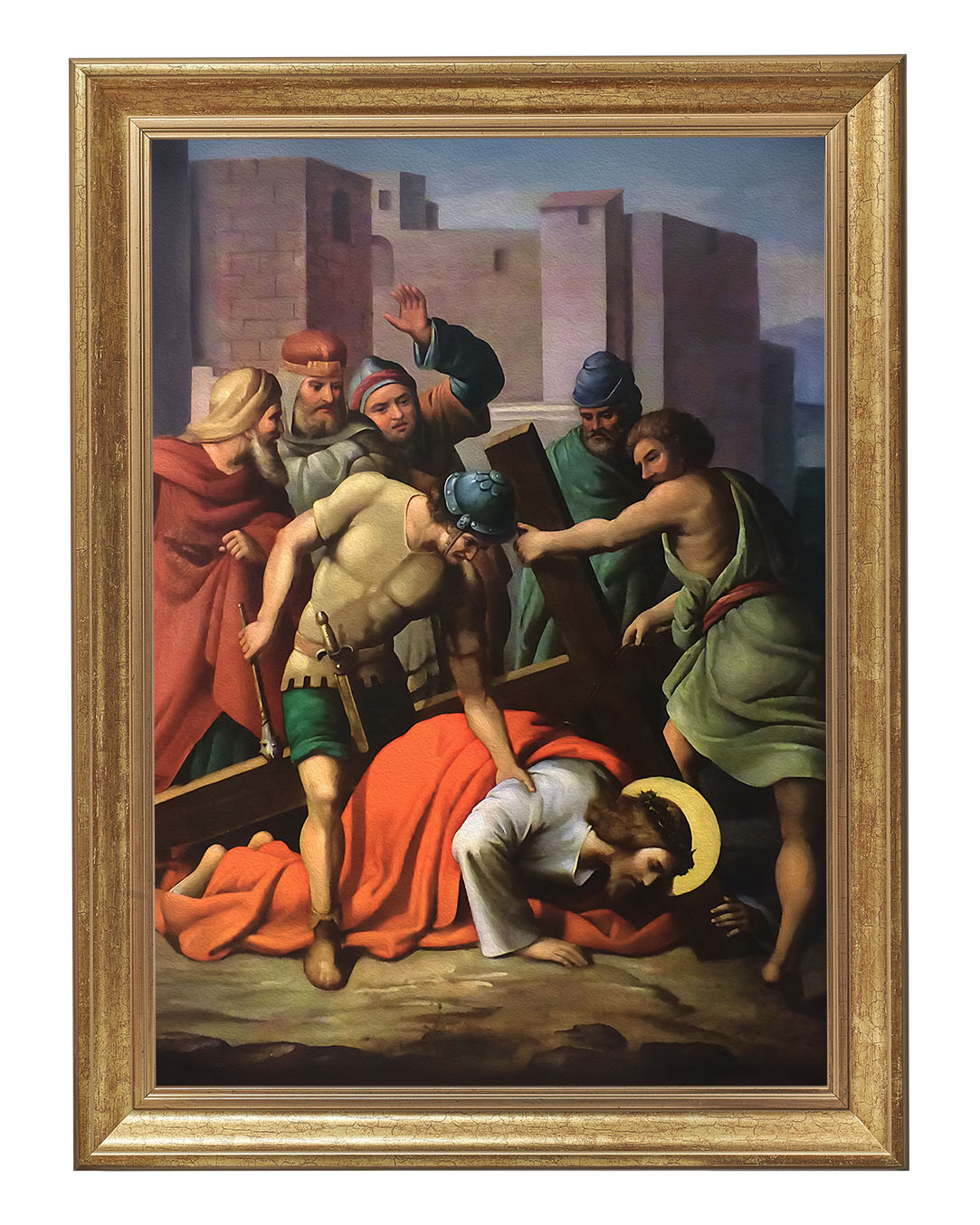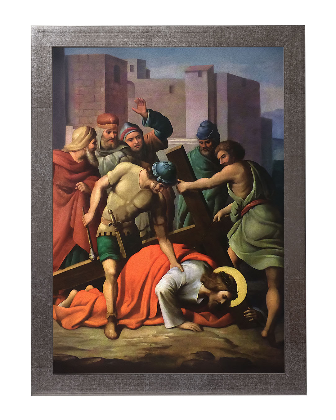 Obraz o tematyce biblijnej poruszający motyw drogi krzyżowej. Jezu, dźwigający upadających,