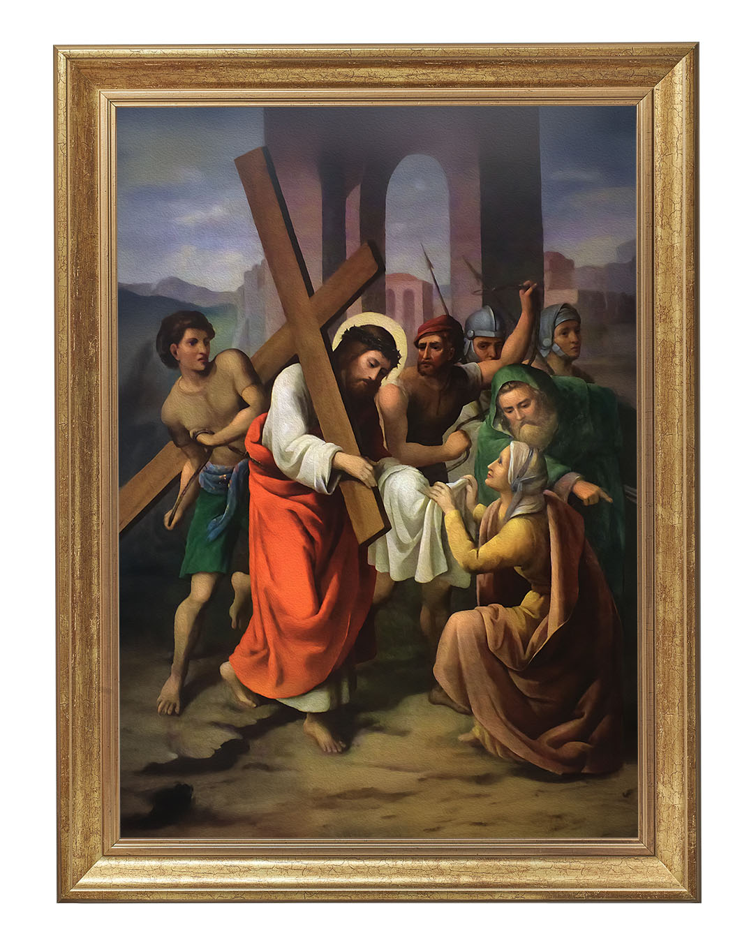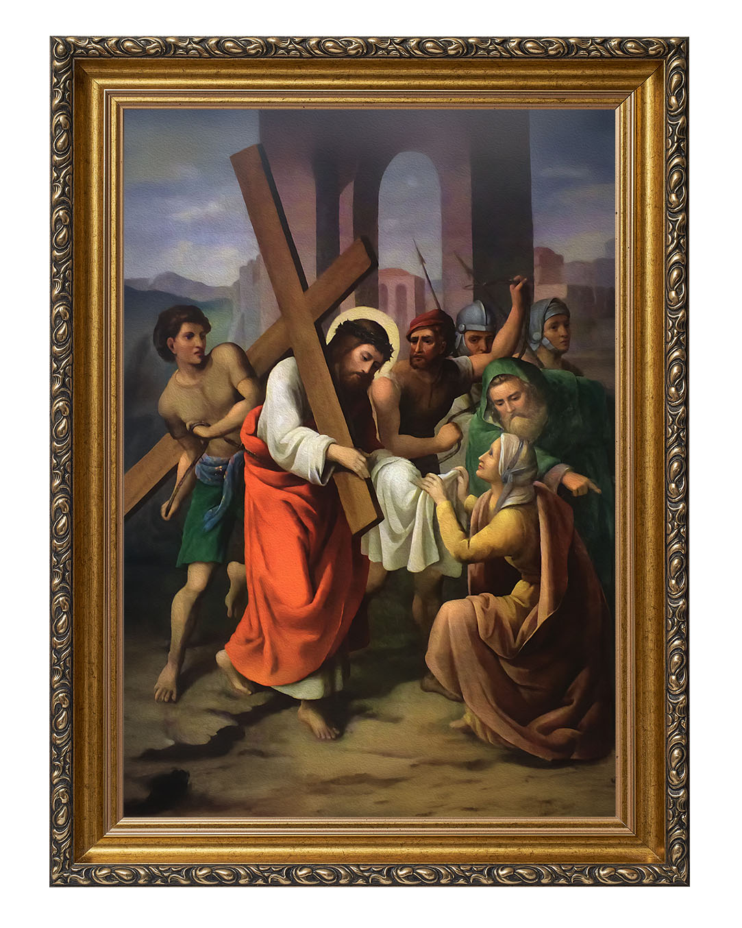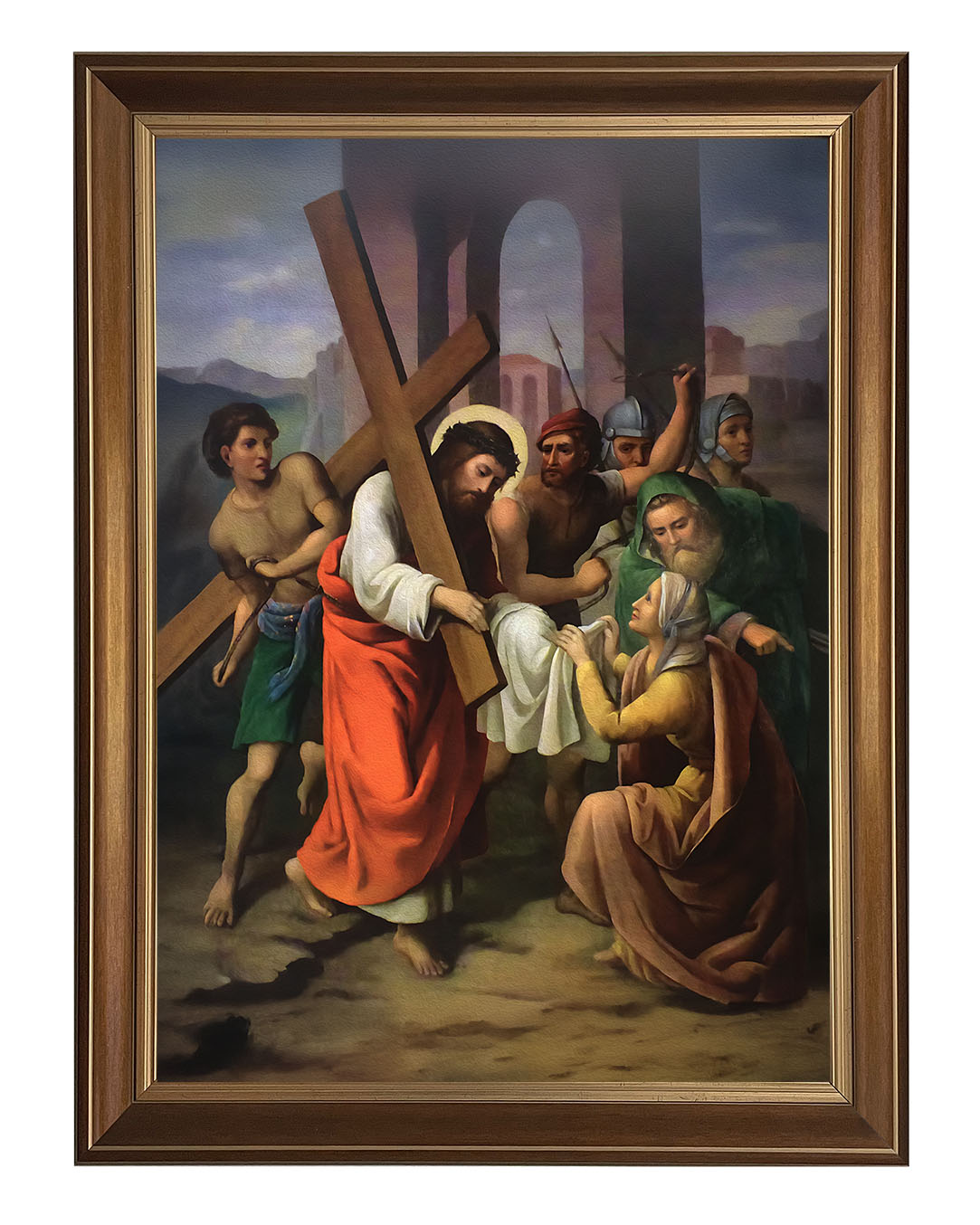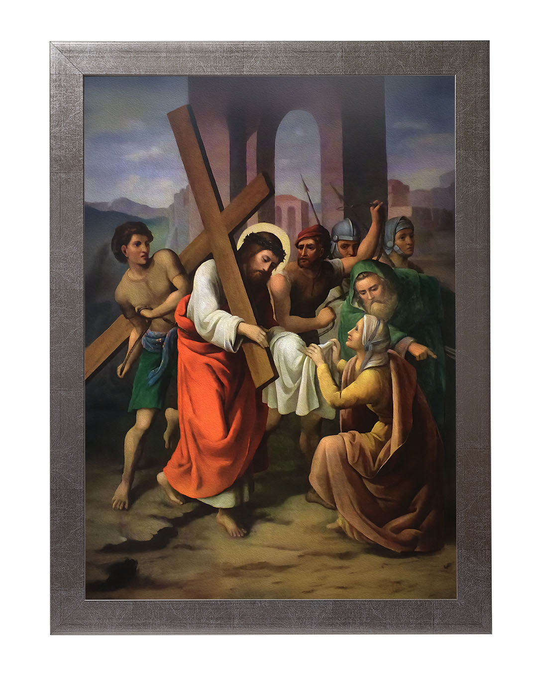 Obraz o tematyce biblijnej poruszający motyw drogi krzyżowej. Jezu, obdarzający Weronikę