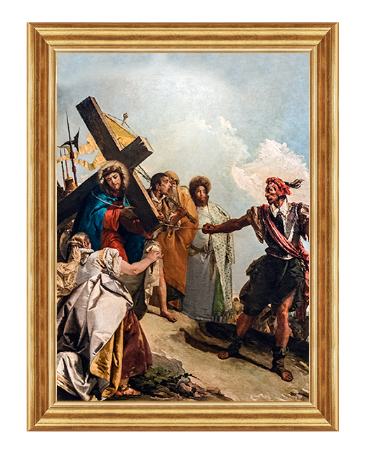 Obraz o tematyce biblijnej poruszający motyw drogi krzyżowej. Błogosławiony Jezus,