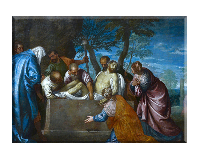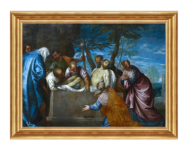 Kopia dzieła Tycjana przedstawiająca złożeniedo grobu Jezusa Chrystusa.