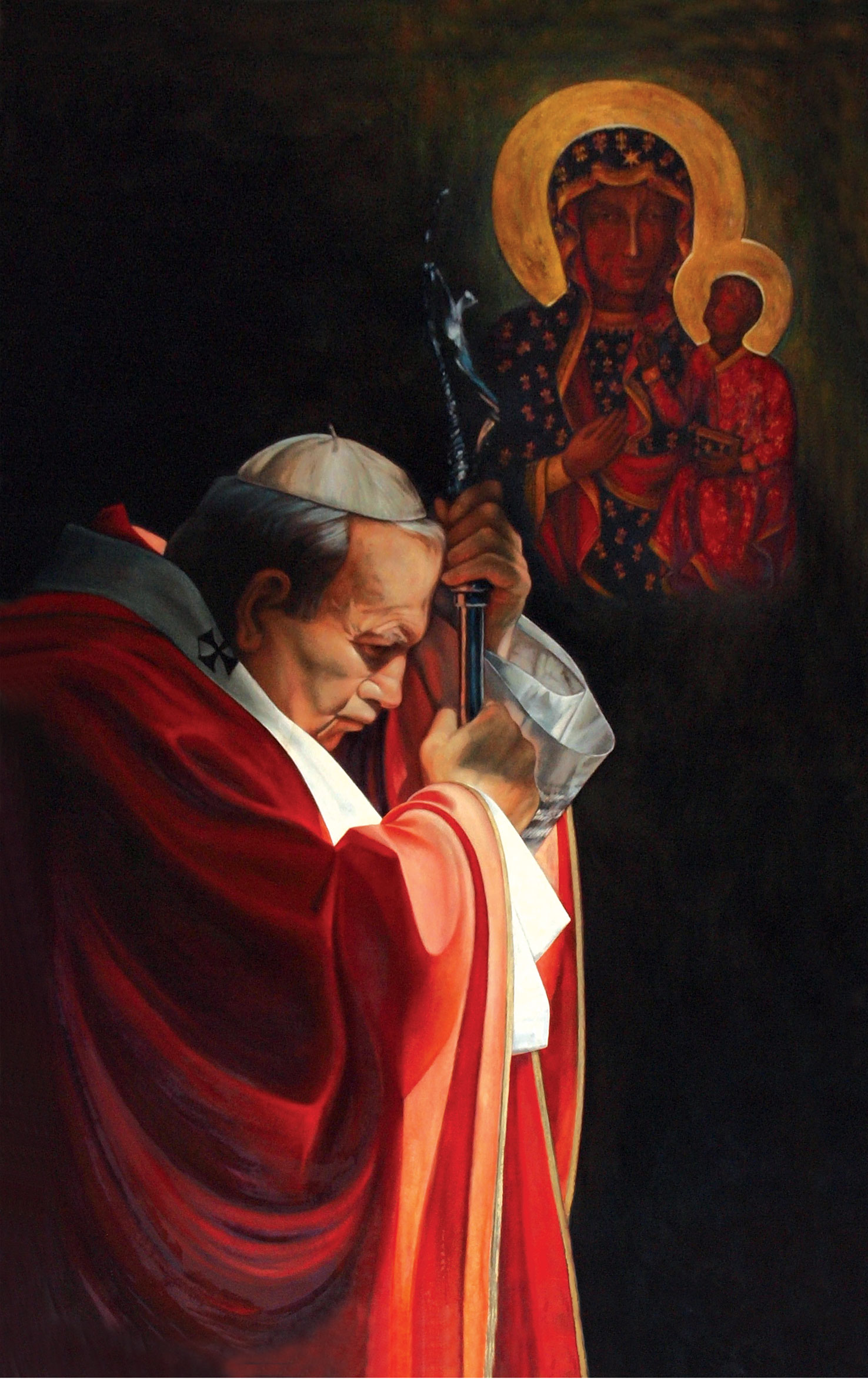 z wizerunkami Jana Pawła II i Matki Bożej Częstochowskiej.
