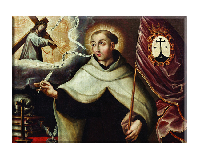 Jest patronem ludzi oddanych kontemplacji.Cechy obrazu