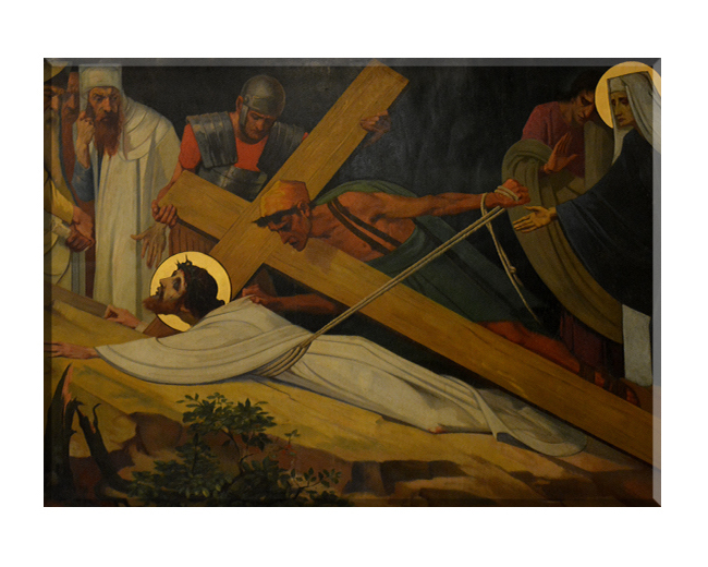Obraz o tematyce biblijnej poruszający motyw drogi krzyżowej."Już niedaleko mój Panie,