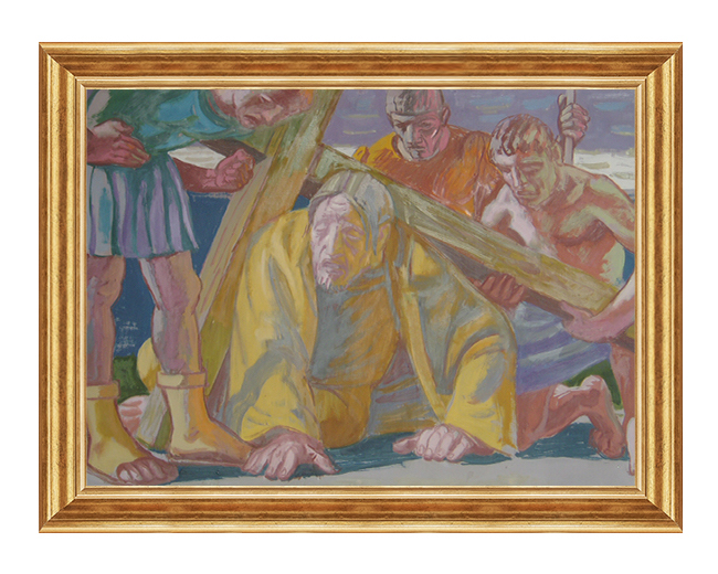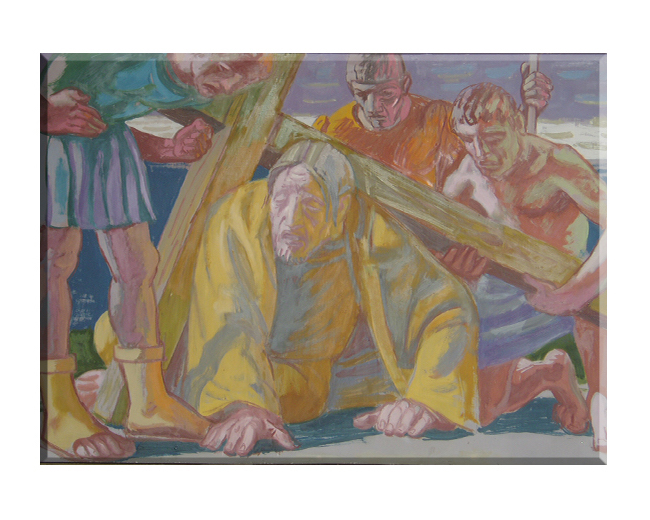 Obraz o tematyce biblijnej poruszający motyw drogi krzyżowej.Przy tej stacji lepiej rozumiemy prawo życia duchowego,