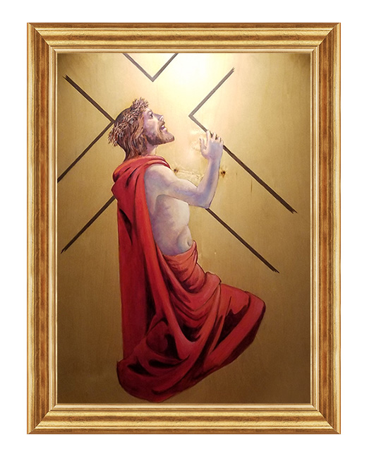 Obraz o tematyce biblijnej poruszający motyw drogi krzyżowej.„Wtedy więc wydał Go im, aby Go ukrzyżowano.