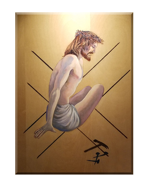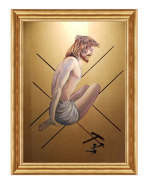 Obraz o tematyce biblijnej poruszający motyw drogi krzyżowej.„Kiedy przybyli na miejsce,