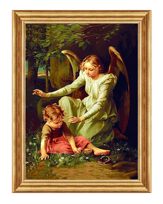 W wierzeniach chrześcijańskich istota niematerialna, anioł, mająca pośredniczyć między Bogiem a człowiekiem i pełnić funkcję indywidualnego opiekuna. Wiara w nie opiera się na tekstach biblijnych. W księdzie Hioba opisany jest jako "obrońca jeden z tysiąca", a Bazyli Wielki głosił, że każdy człowiek ma swojego Anioła Stróża.Cechy obrazu