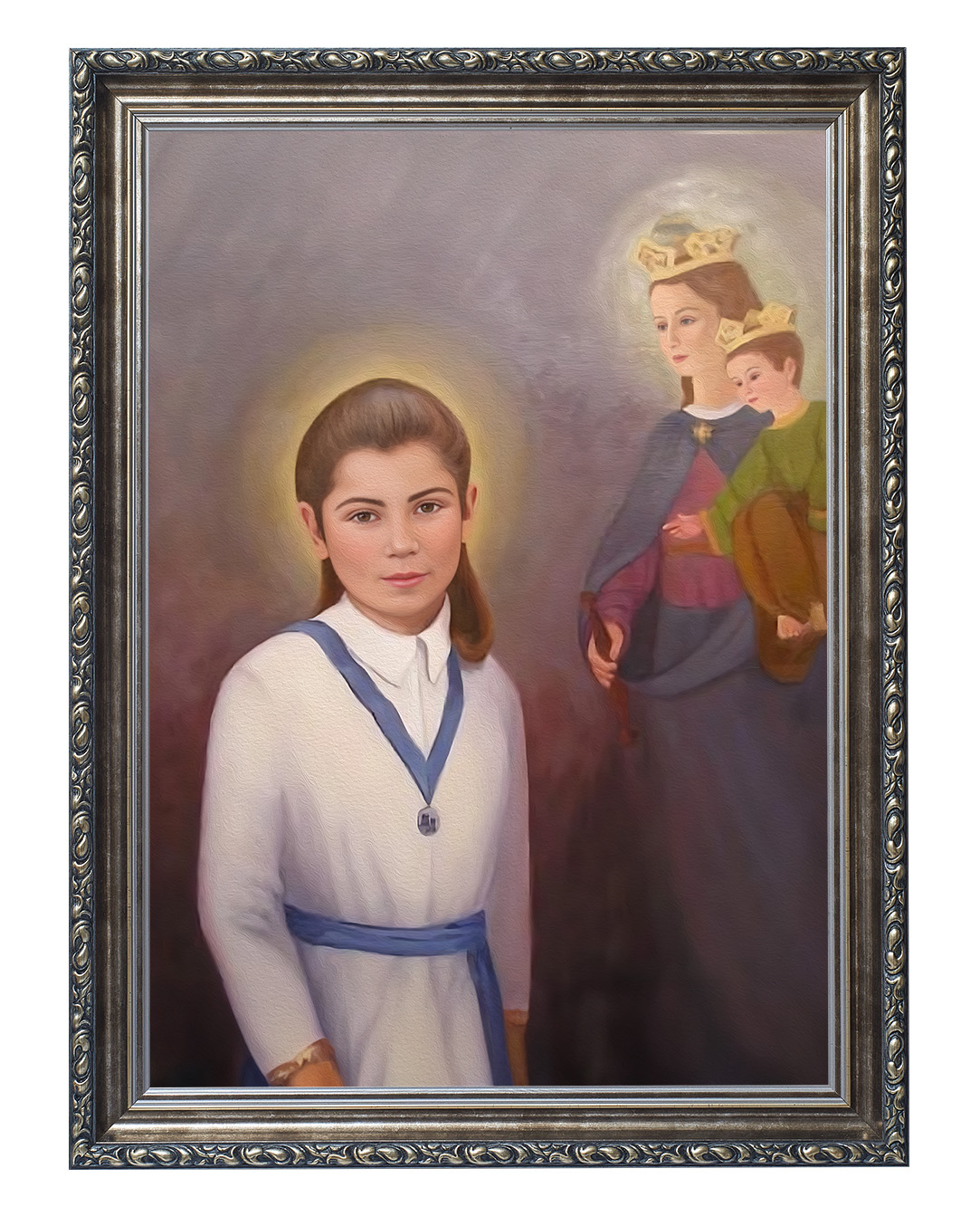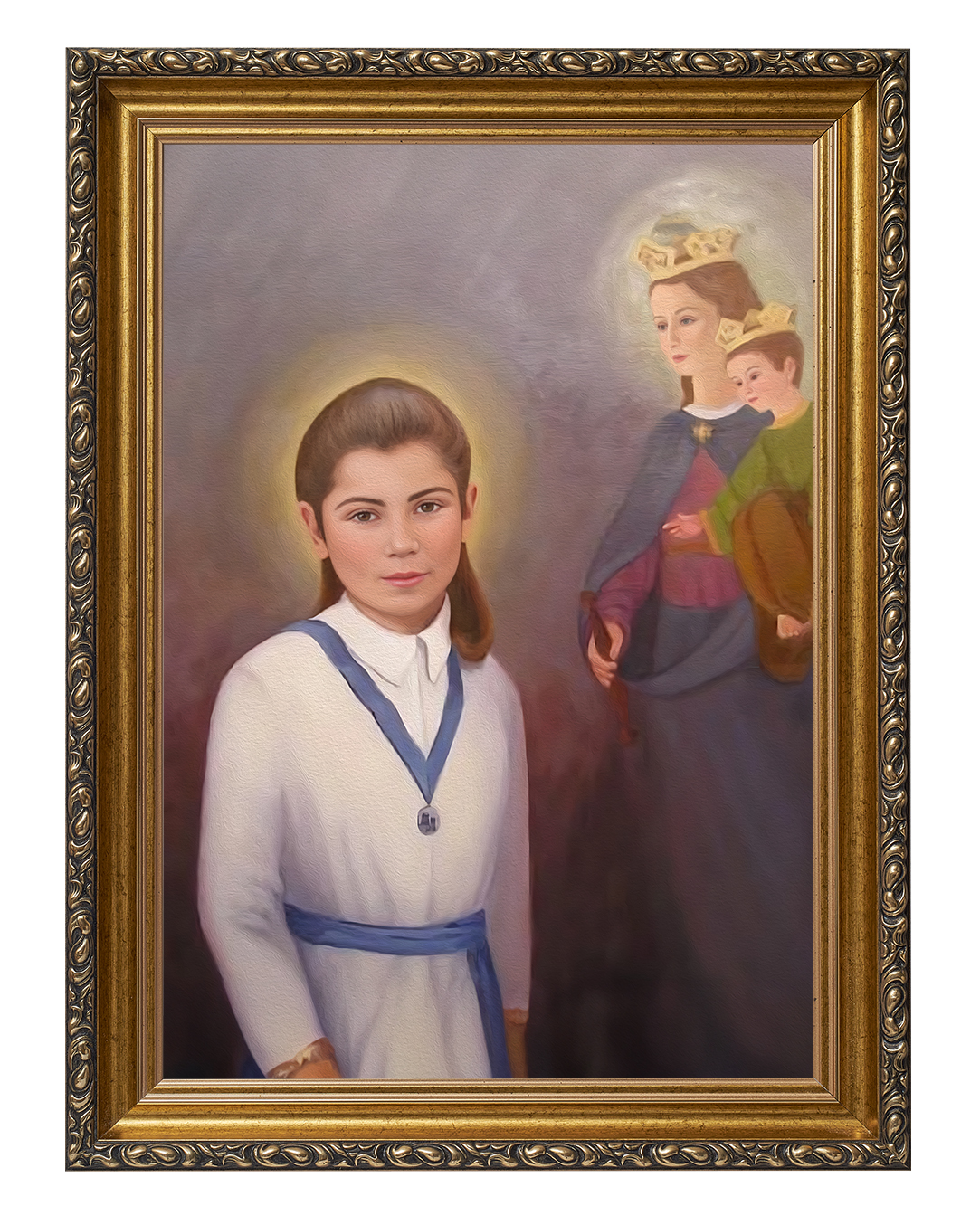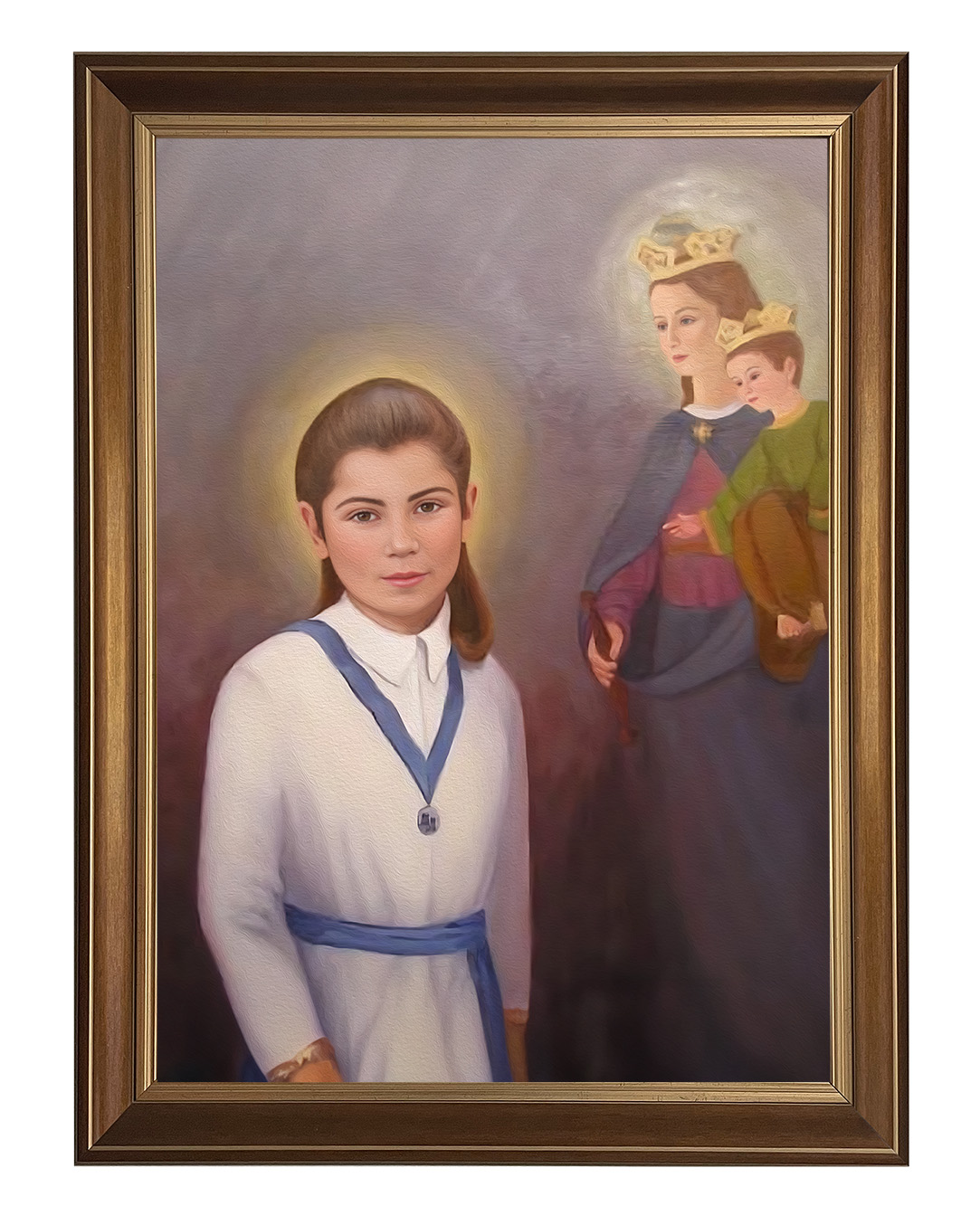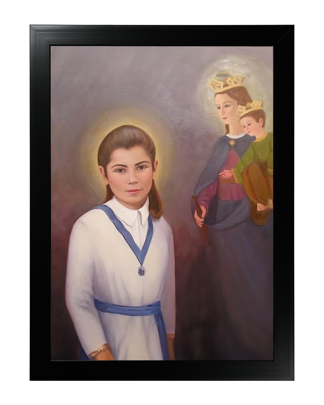 Obraz religijny na płótnie z wizerunkiem błogosławionej Laury Vicuny z Matką Bożą