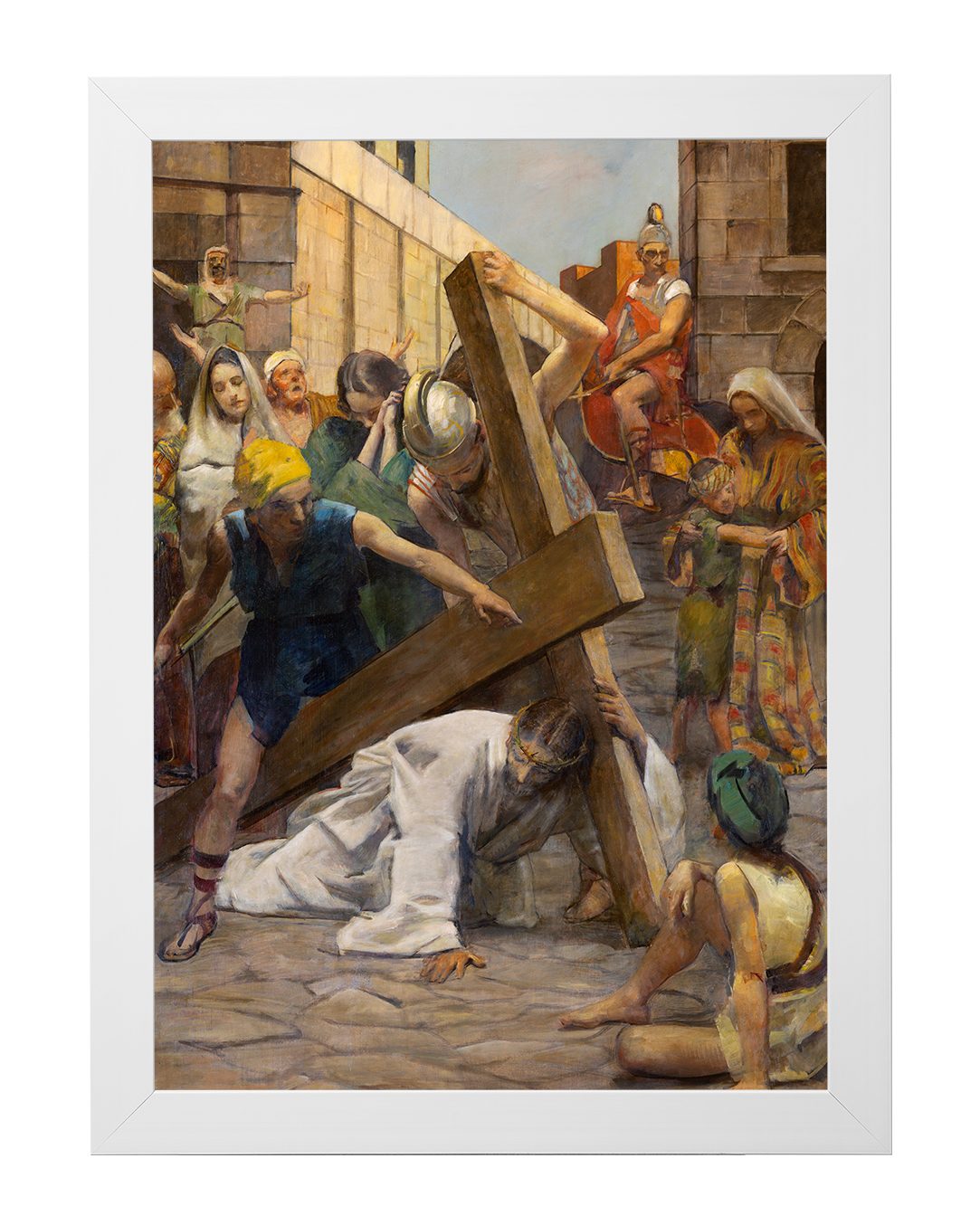 Obraz o tematyce biblijnej poruszający motyw drogi krzyżowej.Jak to, podnosisz się Panie?