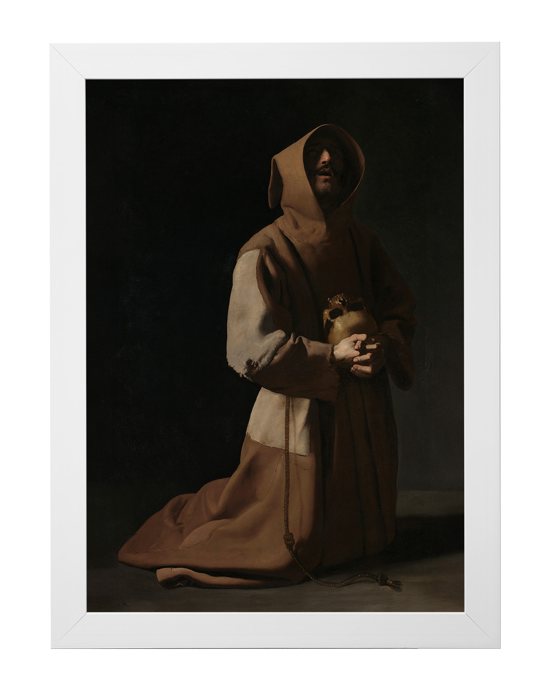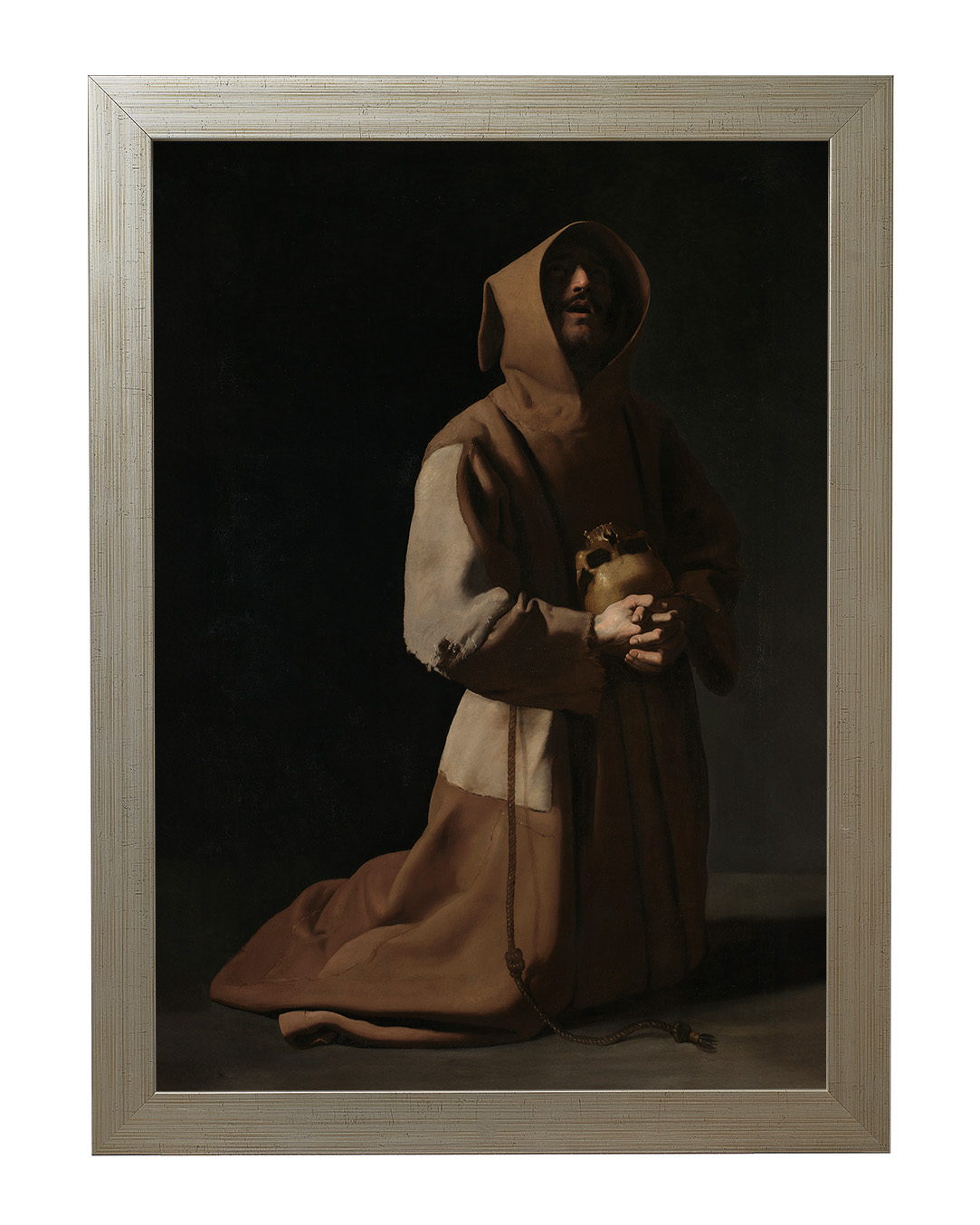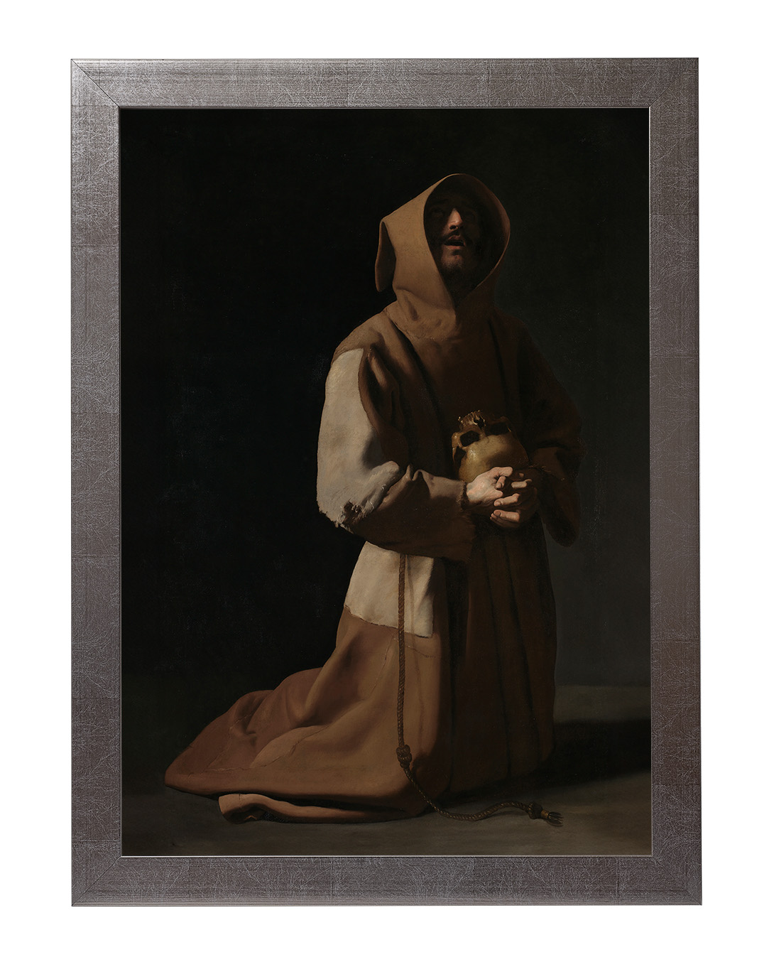 Artysta, Francisco de Zurbarán, operując subtelnym światłocieniem, podkreślił ascetyczny charakter postaci, której twarz skrywa cień kaptura, nadając całości tajemniczości i głębi. Praca ta odzwierciedla duchowy wymiar franciszkanizmu, zapraszając do chwili zadumy nad istotą życia i śmierci.