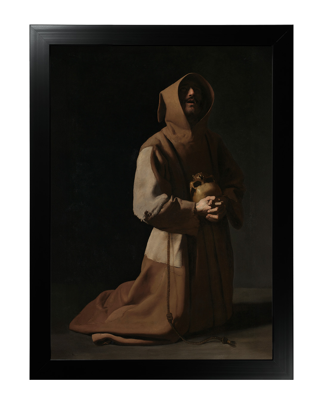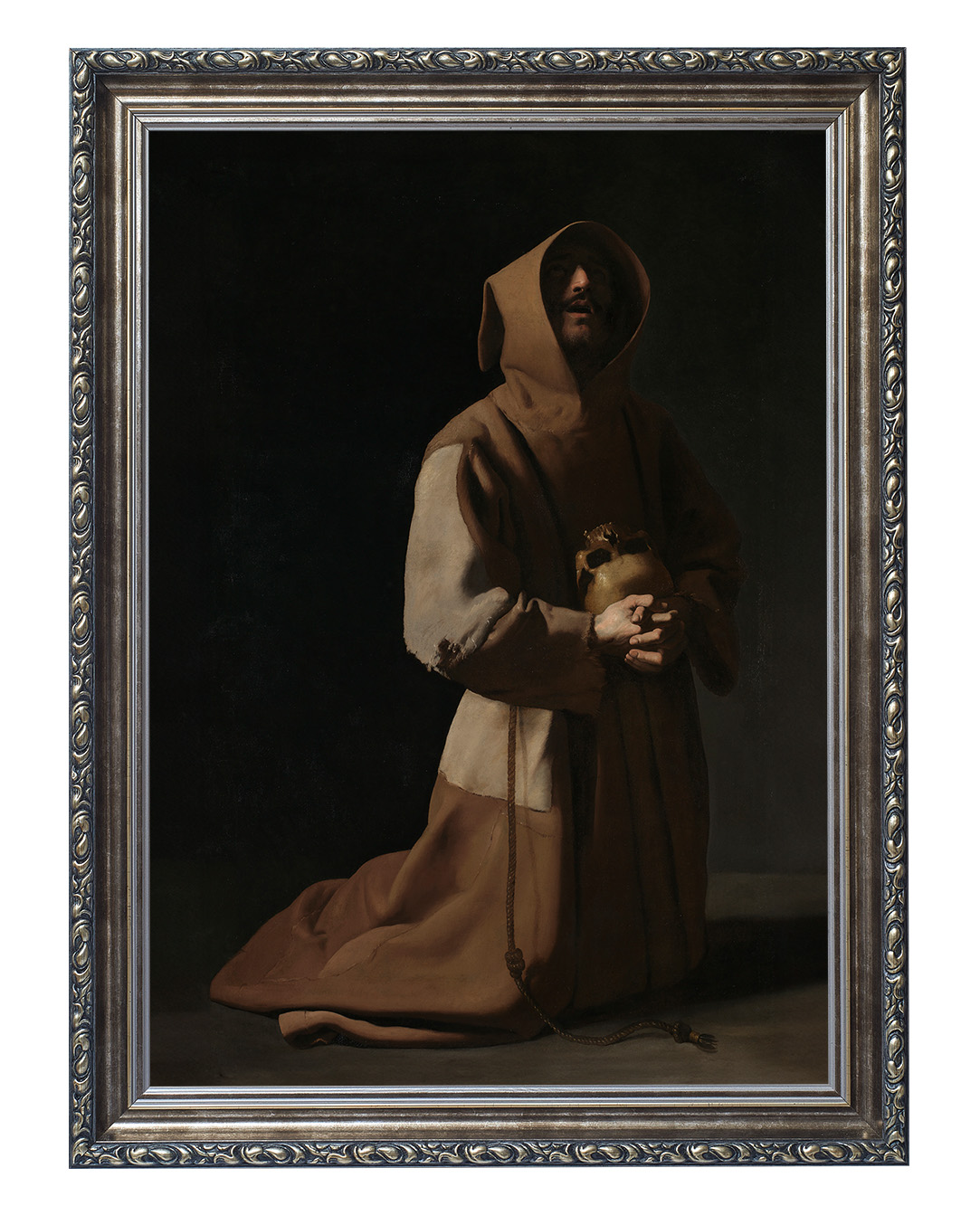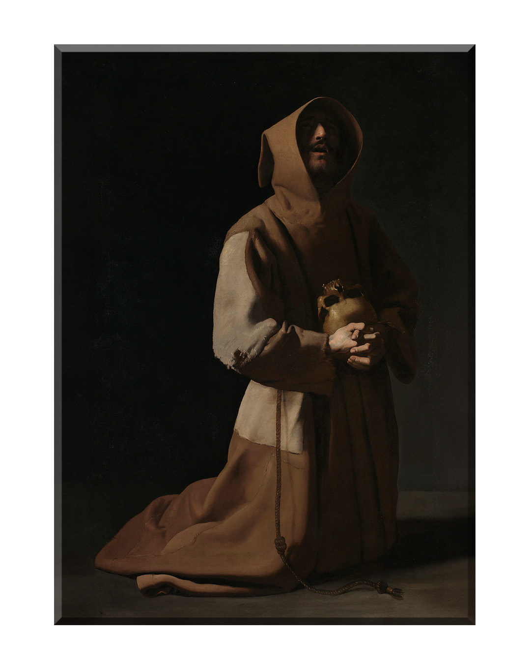 Artysta, Francisco de Zurbarán, operując subtelnym światłocieniem, podkreślił ascetyczny charakter postaci, której twarz skrywa cień kaptura, nadając całości tajemniczości i głębi. Praca ta odzwierciedla duchowy wymiar franciszkanizmu, zapraszając do chwili zadumy nad istotą życia i śmierci.