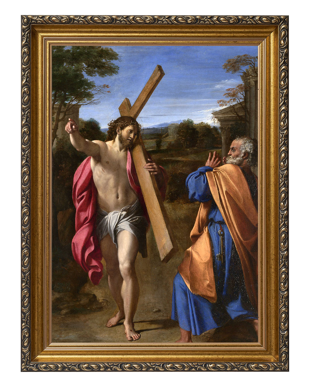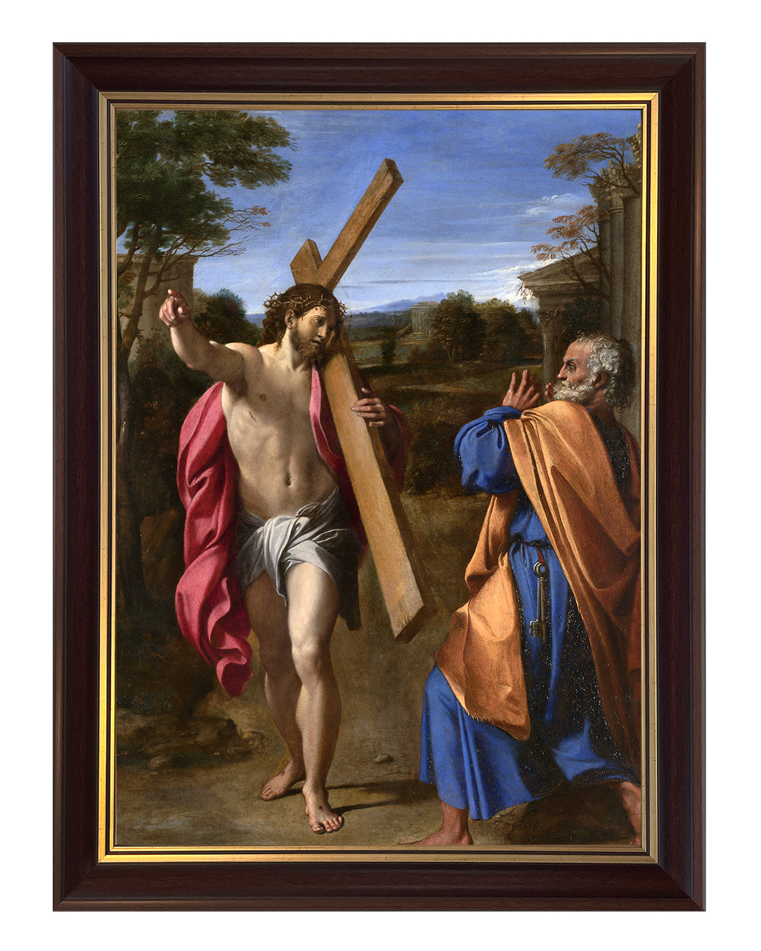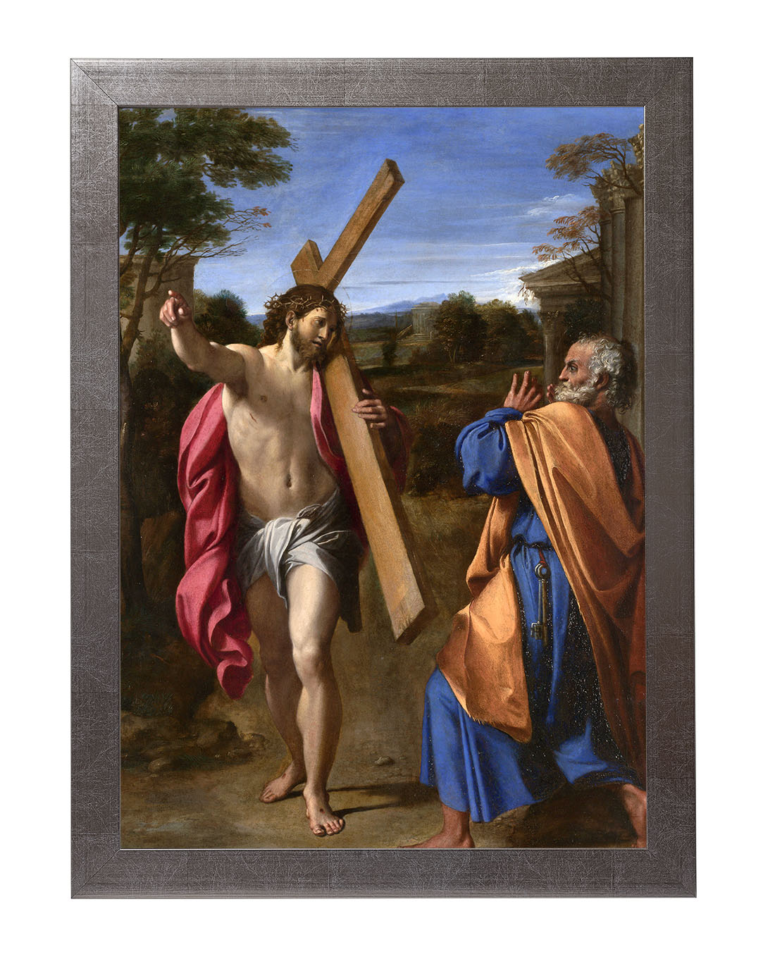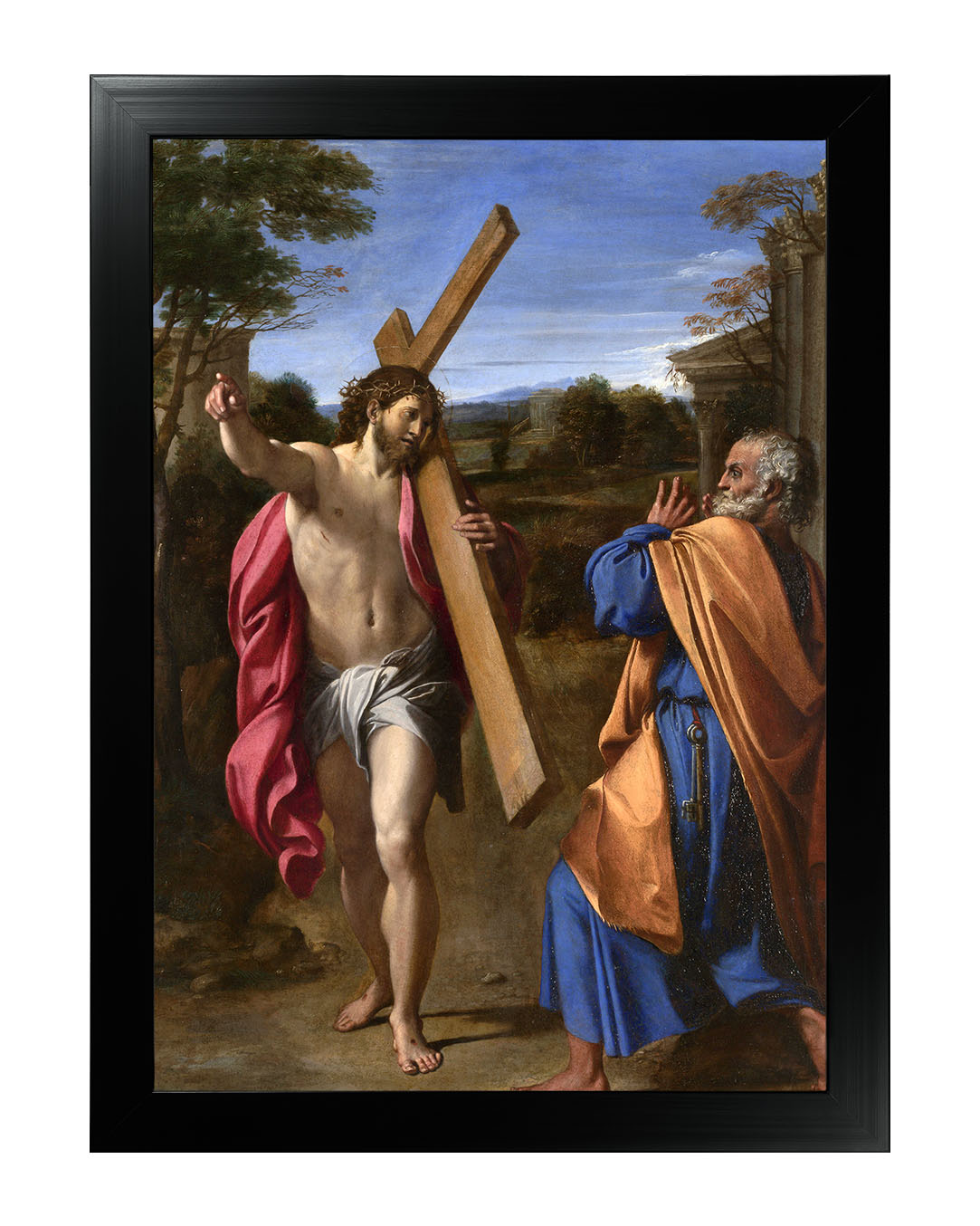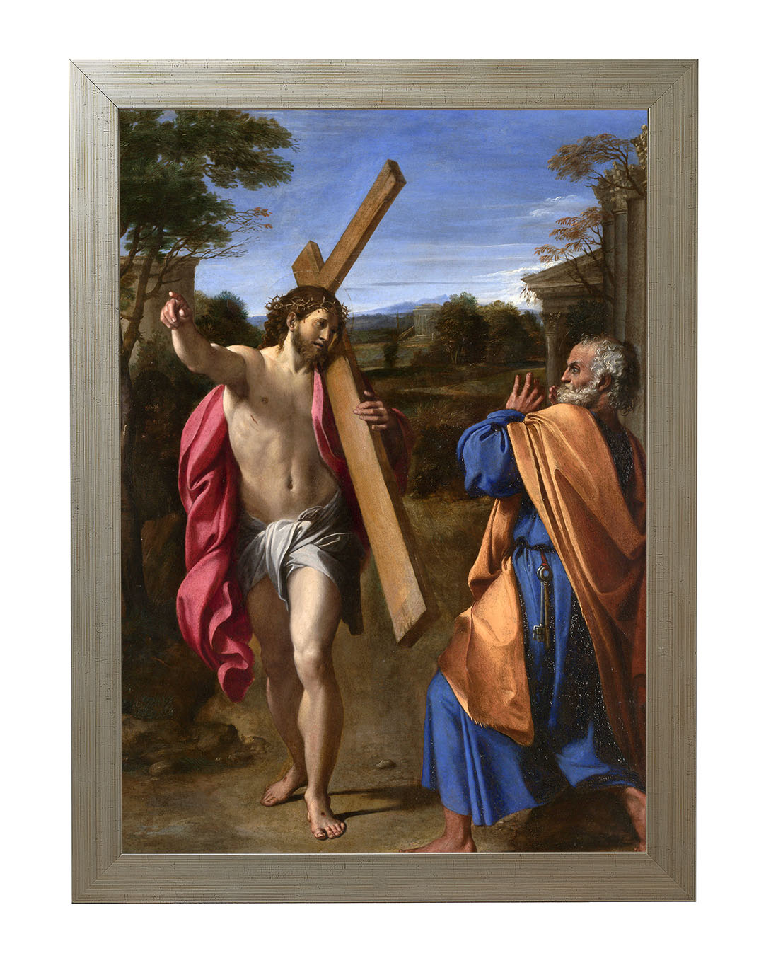Obraz przedstawia św. Szymona Piotra, jednego z dwunastu apostołów Jezusa i pierwszego papieża Kościoła katolickiego. Obraz Chrystus ukazuje się Świętemu Piotrowi na Via Appia autorstwa Annibale'a Carracciego przedstawia moment, kiedy Święty Piotr, uciekający z Rzymu w obawie przed śmiercią, spotyka Chrystusa na drodze. Chrystus mówi mu, że idzie do Rzymu, by zostać ponownie ukrzyżowanym, co prowadzi Piotra do powrotu, by stanąć w obliczu własnej męczeńskiej śmierci. Obraz wyróżnia się dramatycznym układem postaci i intensywnym światłem, typowym dla późnego stylu Carracciego.