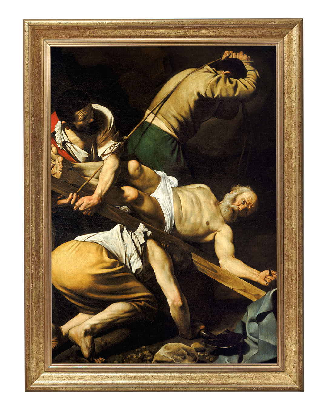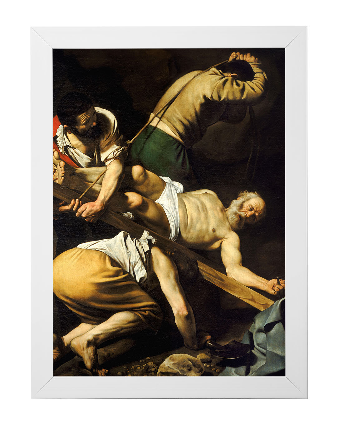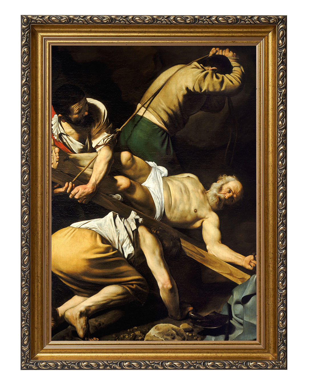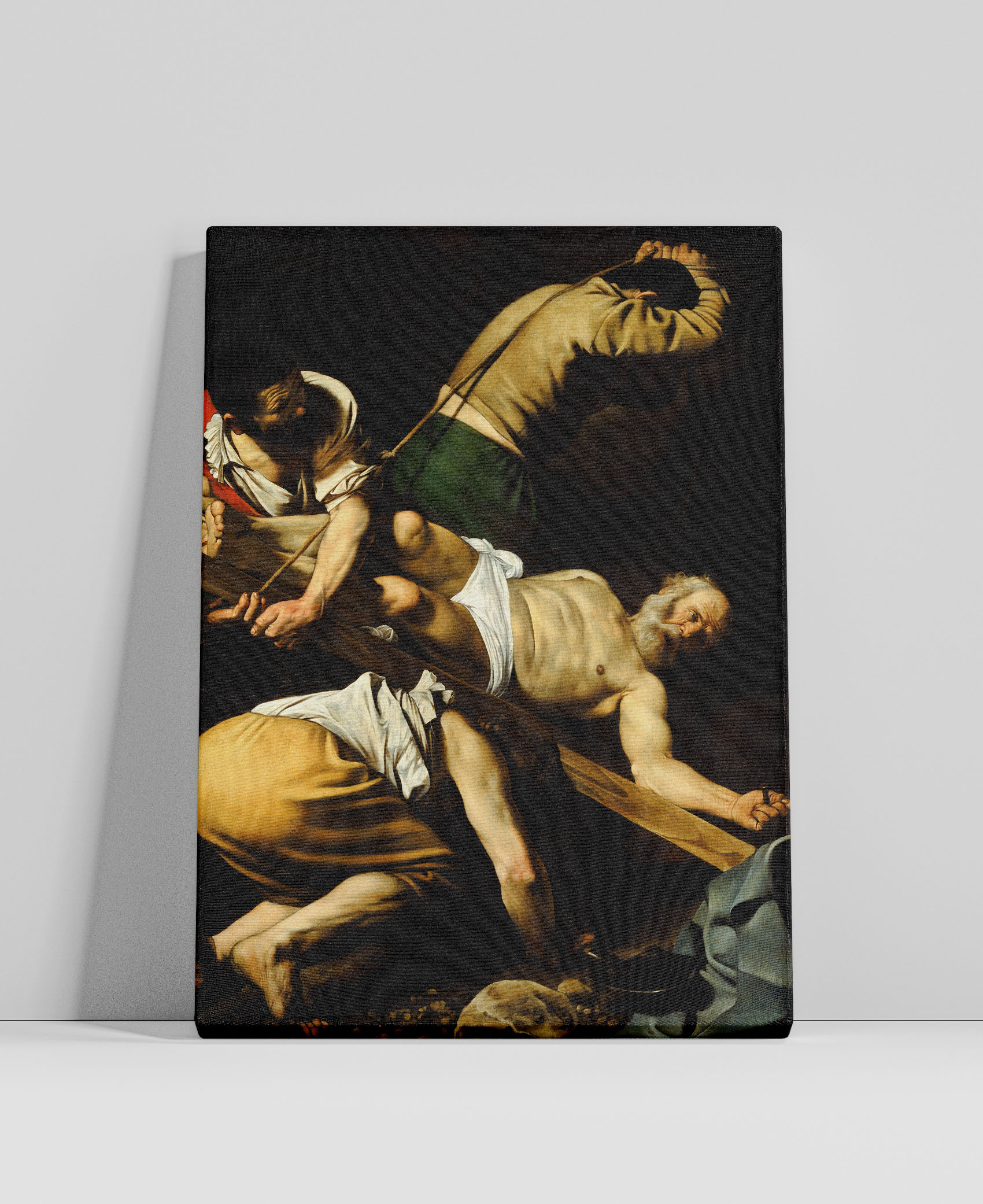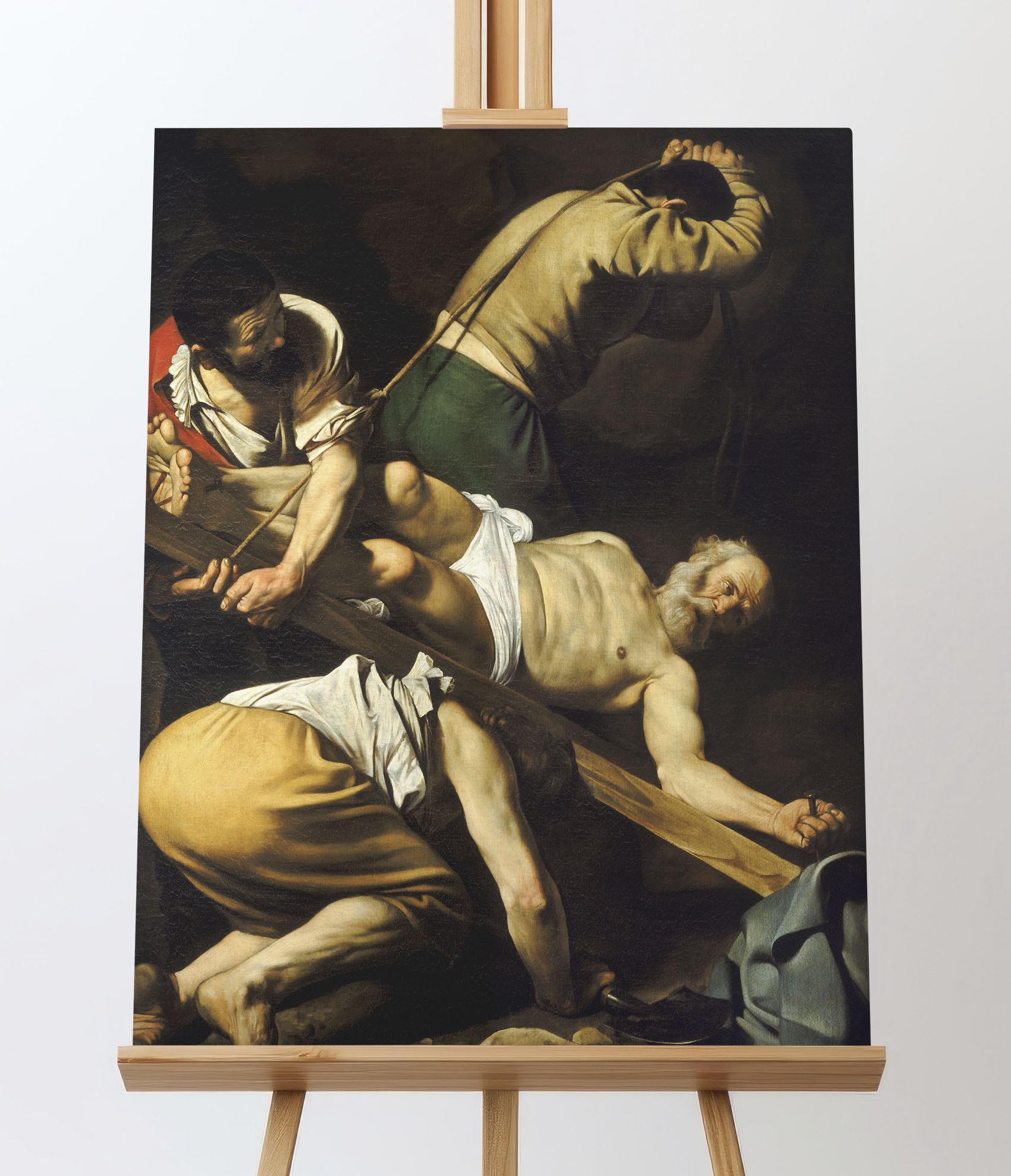 Obraz "Ukrzyżowanie Świętego Piotra" autorstwa Caravaggia ukazuje dramatyczny moment męczeńskiej śmierci apostoła Piotra. Zgodnie z tradycją, Piotr, świadomy swojego niegodnego życia, poprosił o ukrzyżowanie do góry nogami, by nie naśladować Jezusa w tej samej formie. Malarz ukazuje go w cierpieniu i pokorze, podkreślając zarówno jego ludzką słabość, jak i niezłomną wiarę.