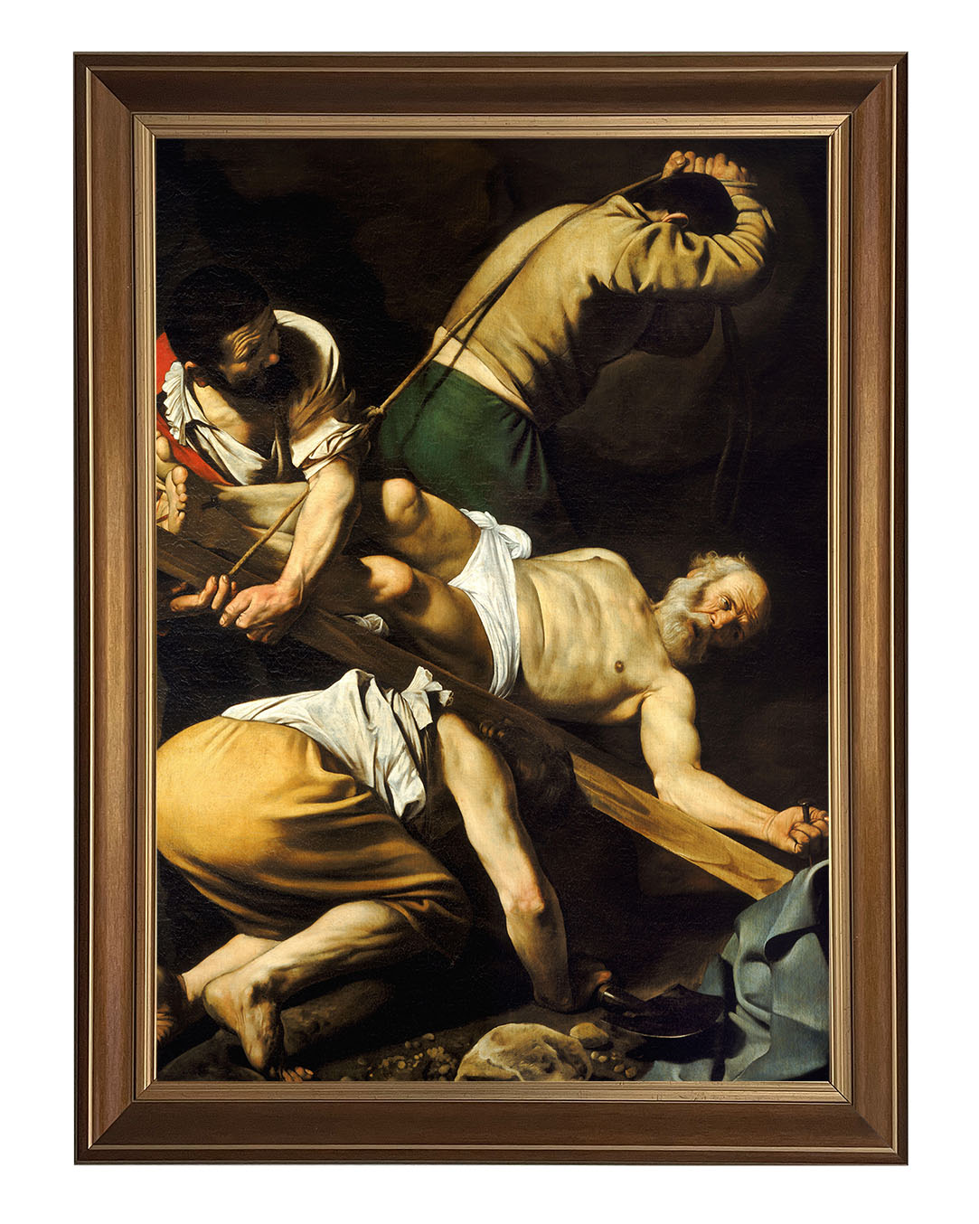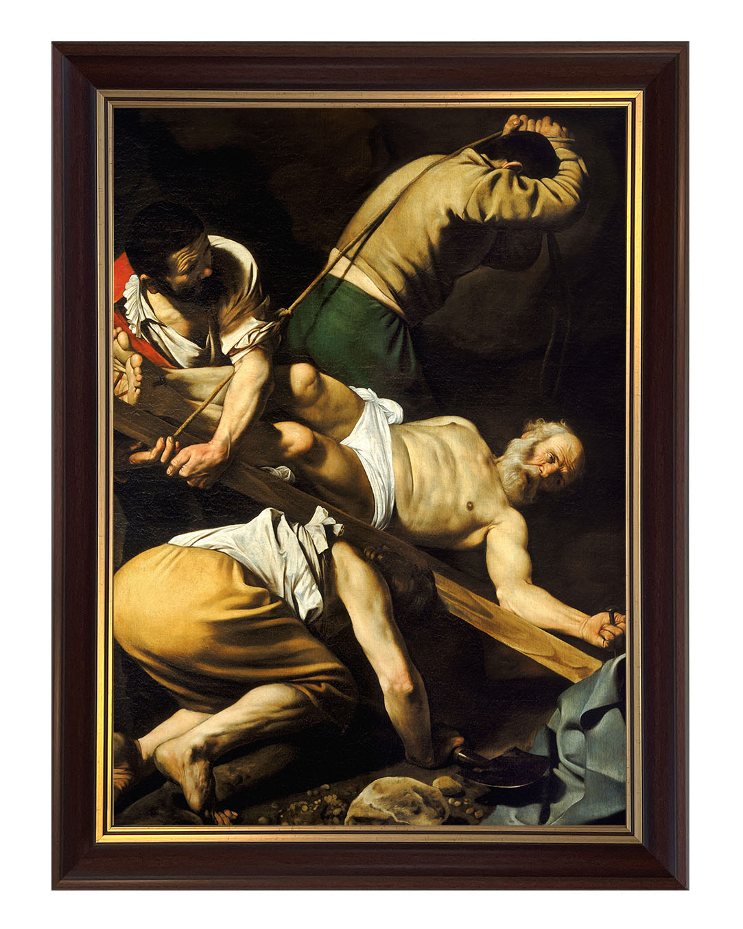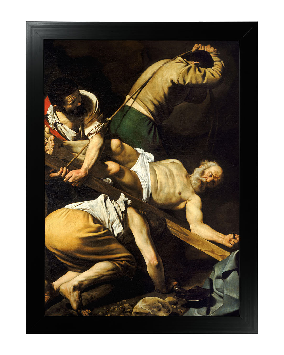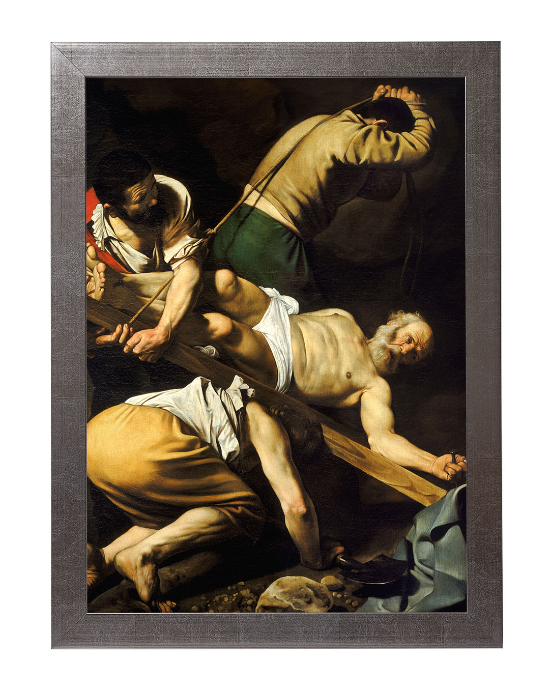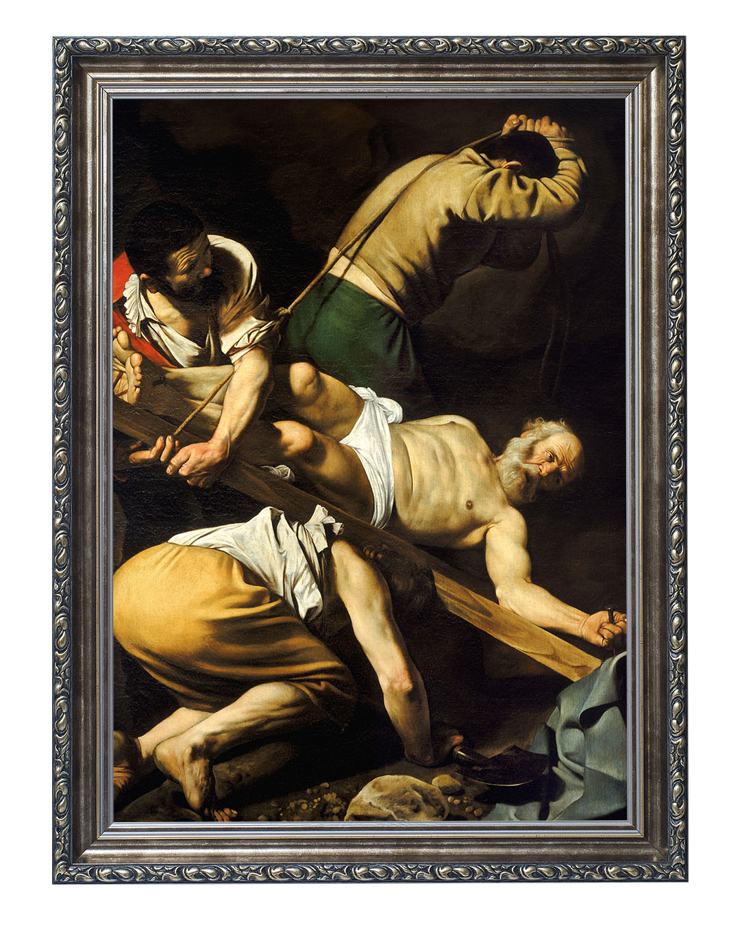 Obraz "Ukrzyżowanie Świętego Piotra" autorstwa Caravaggia ukazuje dramatyczny moment męczeńskiej śmierci apostoła Piotra. Zgodnie z tradycją, Piotr, świadomy swojego niegodnego życia, poprosił o ukrzyżowanie do góry nogami, by nie naśladować Jezusa w tej samej formie. Malarz ukazuje go w cierpieniu i pokorze, podkreślając zarówno jego ludzką słabość, jak i niezłomną wiarę.
