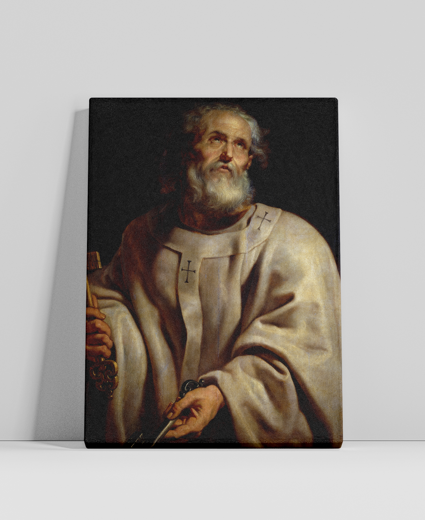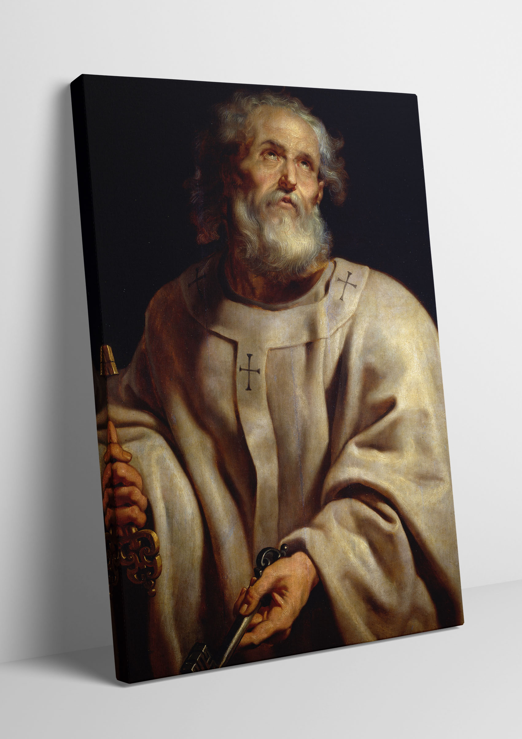 Obraz przedstawia św. Szymona Piotra, jednego z dwunastu apostołów Jezusa i pierwszego papieża Kościoła katolickiego.