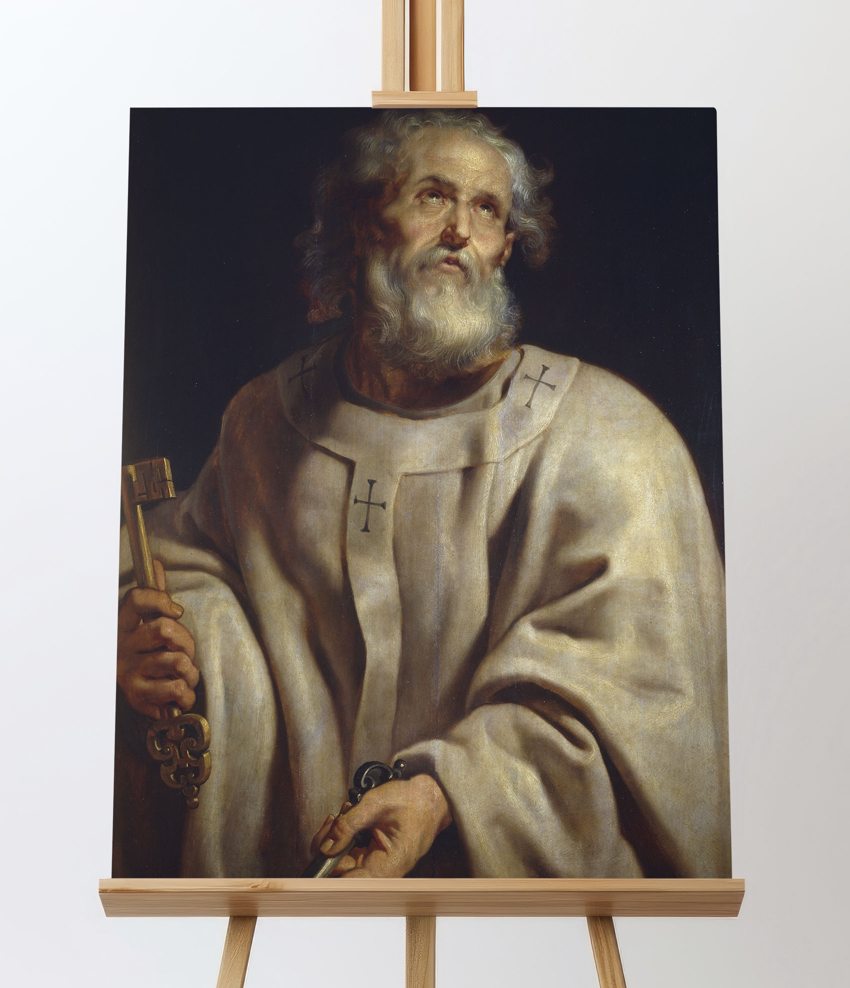 Obraz "Św. Piotr" autorstwa Piotra Paula Rubensa przedstawia jednego z najważniejszych apostołów, który w tradycji chrześcijańskiej symbolizuje wiarę, pokutę i męczeństwo. Rubens uchwycił Piotra w typowy dla siebie sposób, łącząc barokową dynamikę z religijną symboliką. Artysta skupia się na wyrazistej postaci, podkreślając zarówno duchową, jak i fizyczną potęgę apostoła.