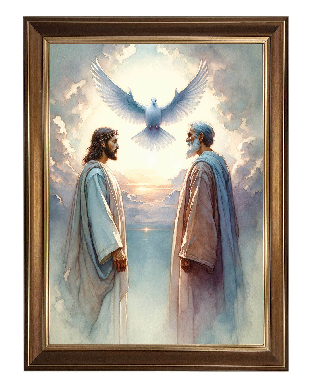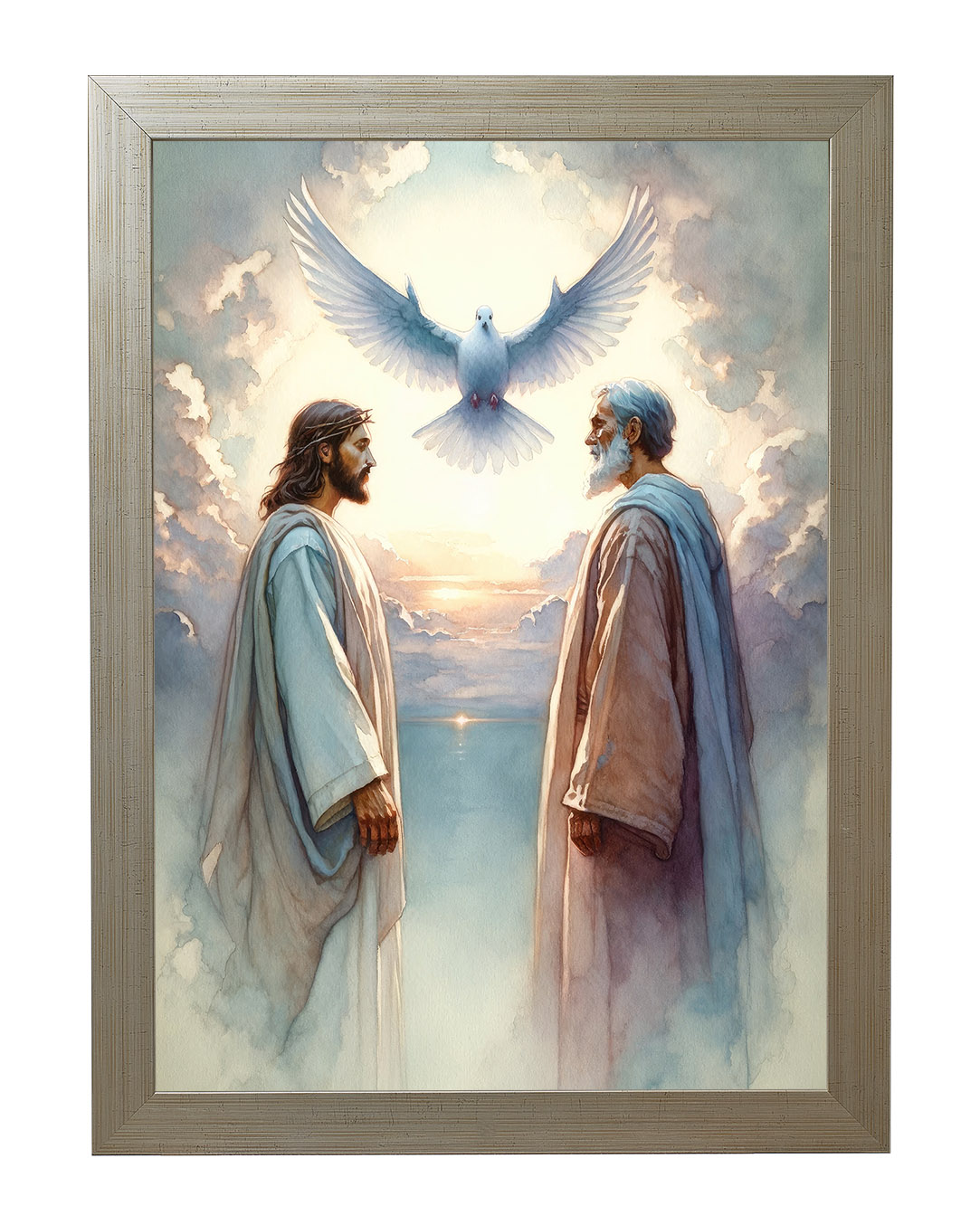 Obraz Trójcy Świętej jest zaproszeniem do kontemplacji tajemnicy Boga obecnego w jedności i miłości. To wizerunek, który może stać się spokojnym punktem odniesienia w przestrzeni, gdzie obraz religijny oznacza wybór drogi prowadzącej ku ciszy i modlitwie.