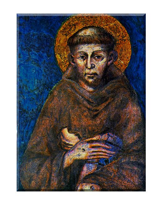 Jest patronem Włoch i Asyżu.Cechy obrazu