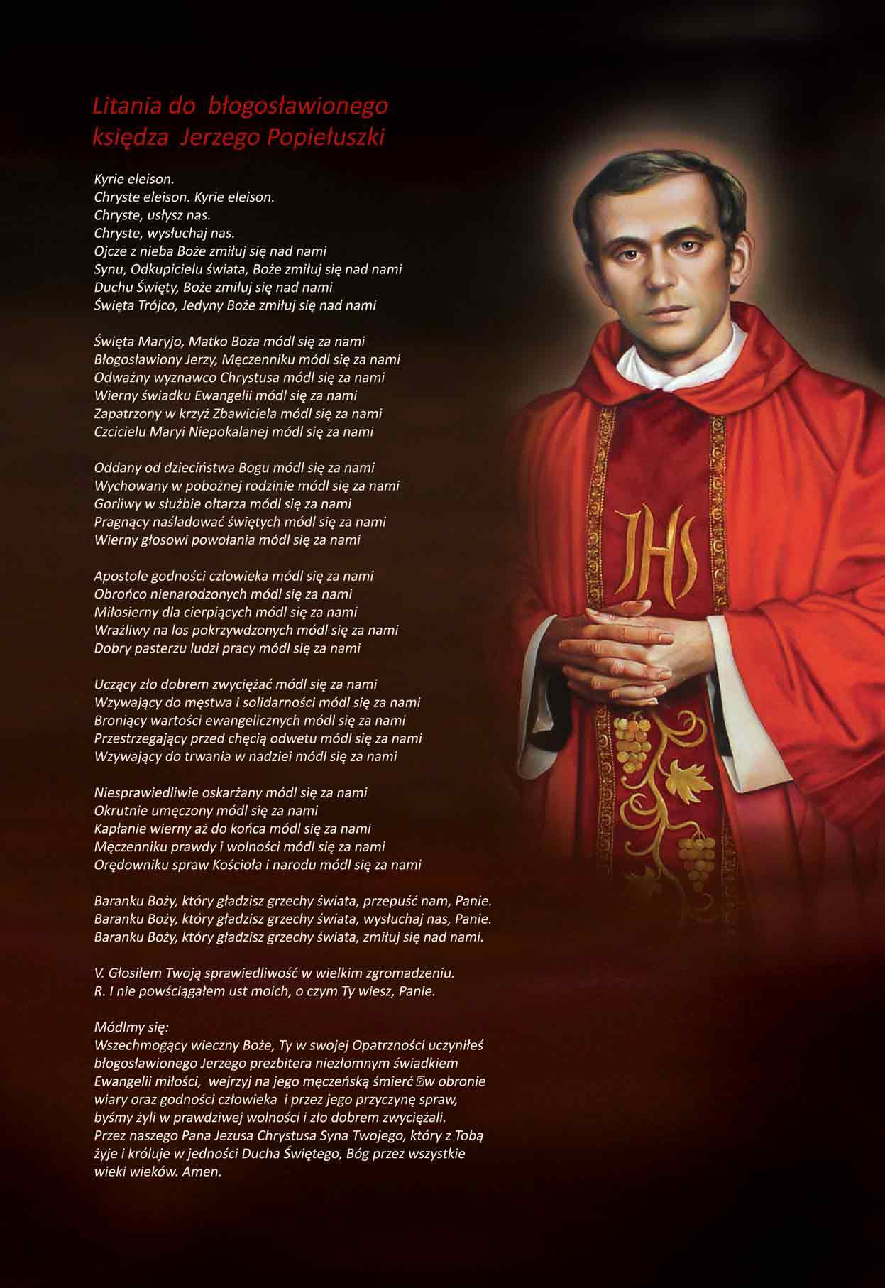 Litania do Błogosławionego Księdza Jerzego Popiełuszki - Obraz religijny